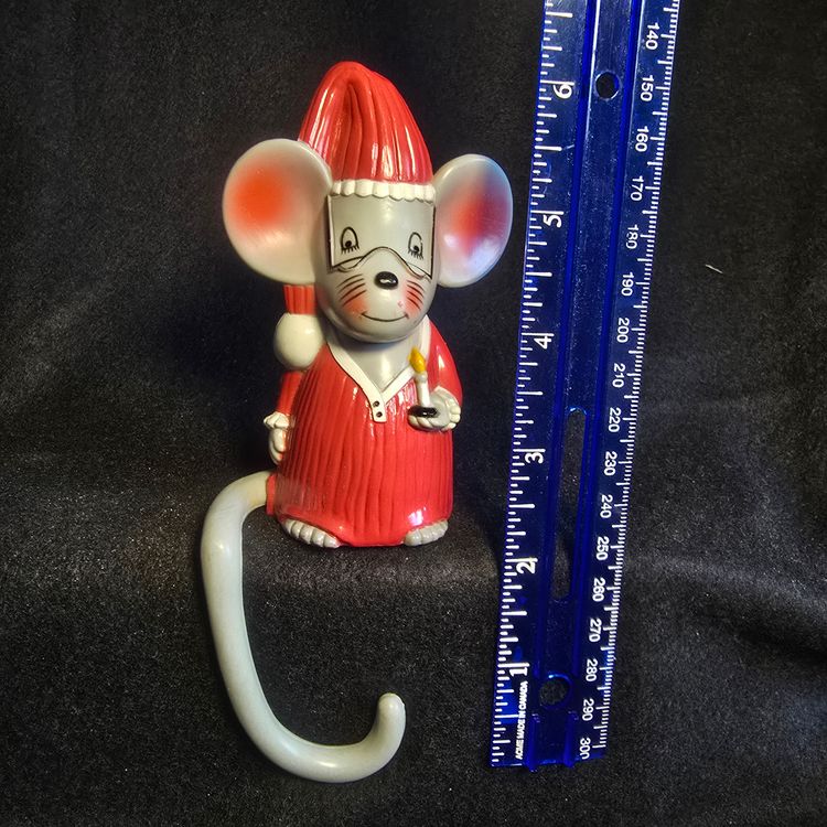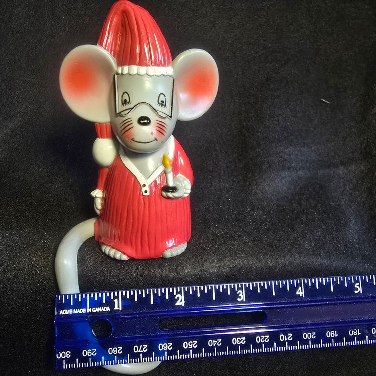 Whimsical gray mouse in nightshirt and cap, holding a candle
