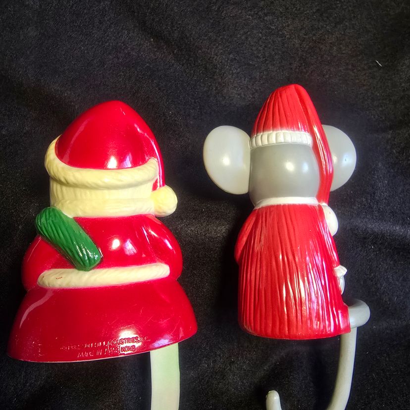 Perfect for hanging stockings on the mantel or shelf. Fun retro design and bright holiday colors make these collectible pieces a standout addition to any vintage Christmas collection.