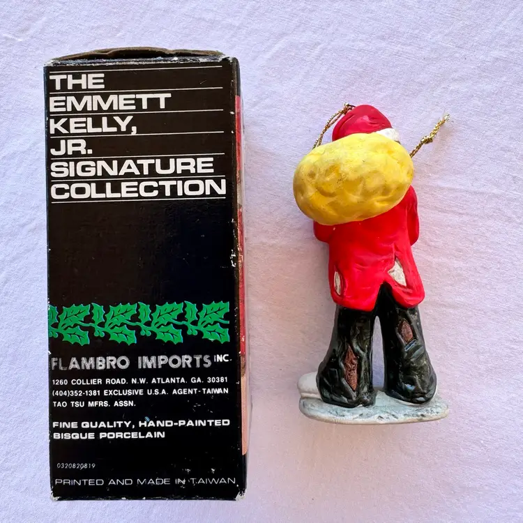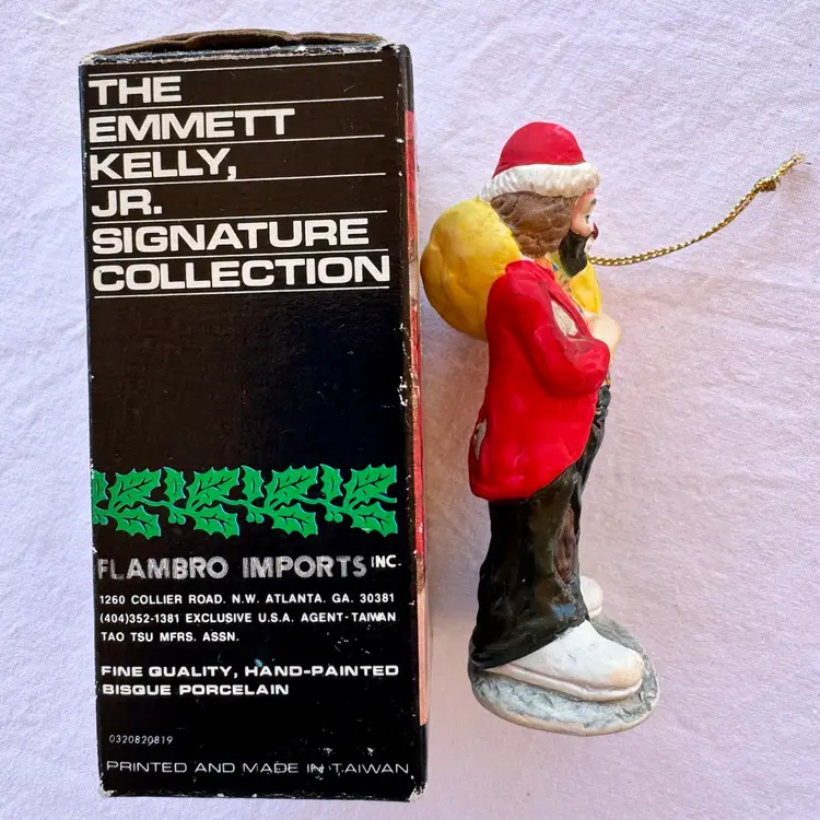 Box text: "THE EMMETT KELLY, JR. SIGNATURE COLLECTION" and "Fine quality, hand-painted bisque porcelain"; printed and made in Taiwan. Original box is included.