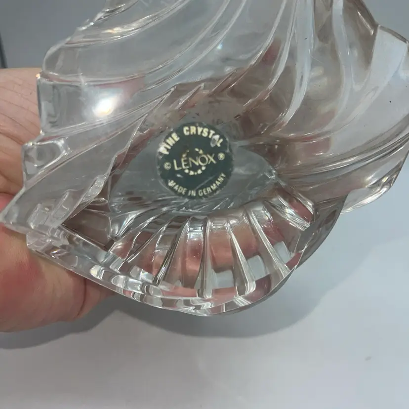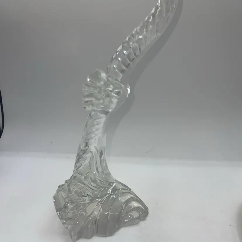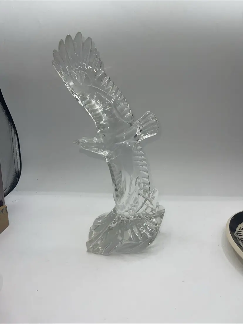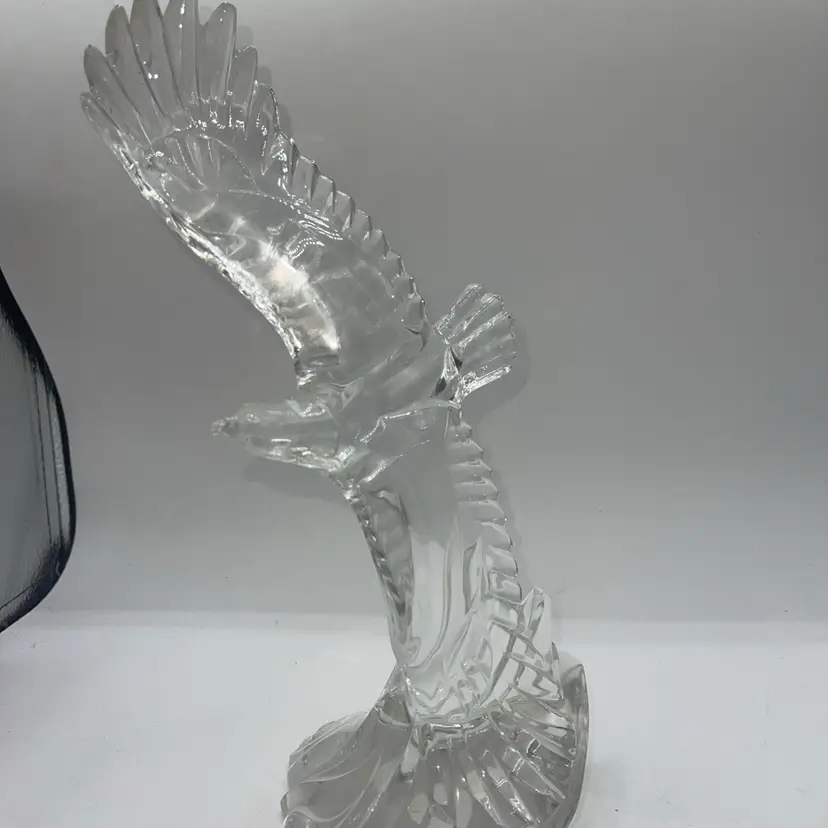 This beautiful crystal figurine by Lenox is a flying eagle made in Germany still has a sticker on the bottom. It is approximate 11 inches tall to the top of the wing.