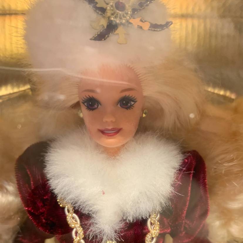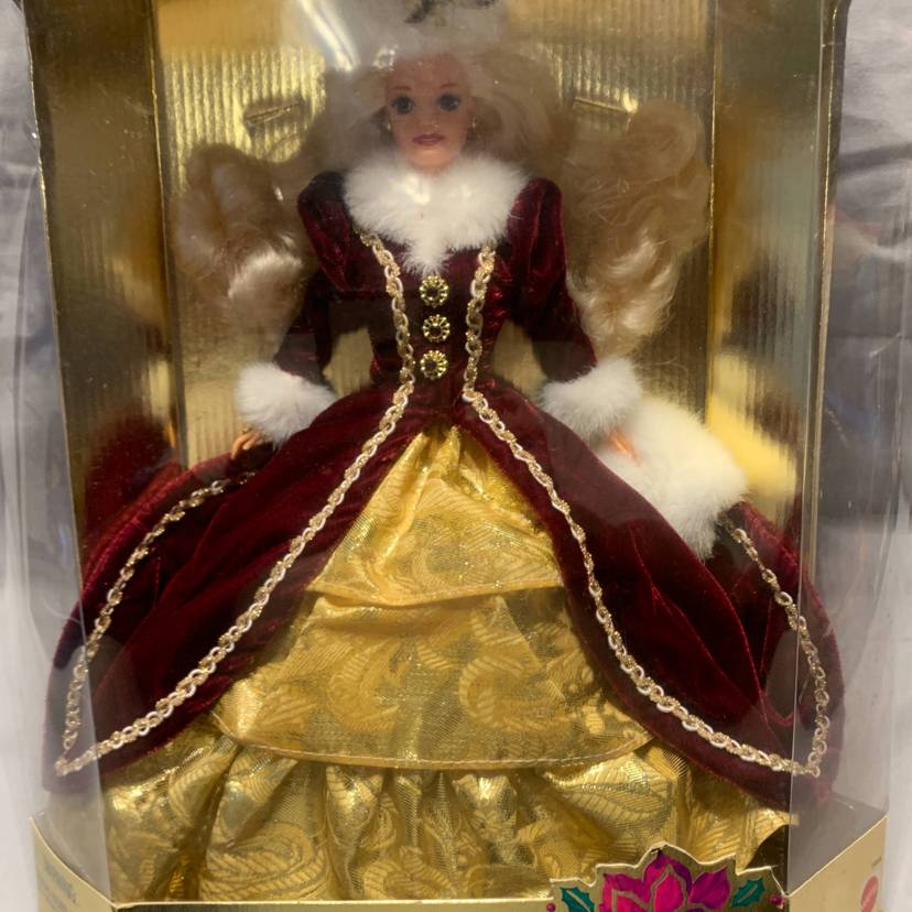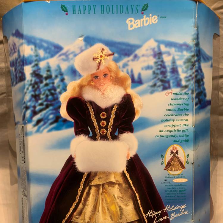 The Vintage 1996 Hallmark Happy Holidays Special Edition Barbie is a collectible fashion doll by Mattel. This Barbie doll features blonde hair, green eyes, and a light complexion, representing a Caucasian ethnicity. Standing at 12 inches tall, it comes in its original unopened packaging, making it a desirable item for collectors of Barbie dolls from the 1990s. With its Christmas theme and special edition status, this Barbie is a unique addition to any doll collection, appealing to both teens and adults who appreciate classic Barbie dolls.