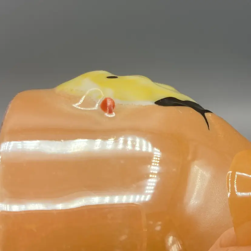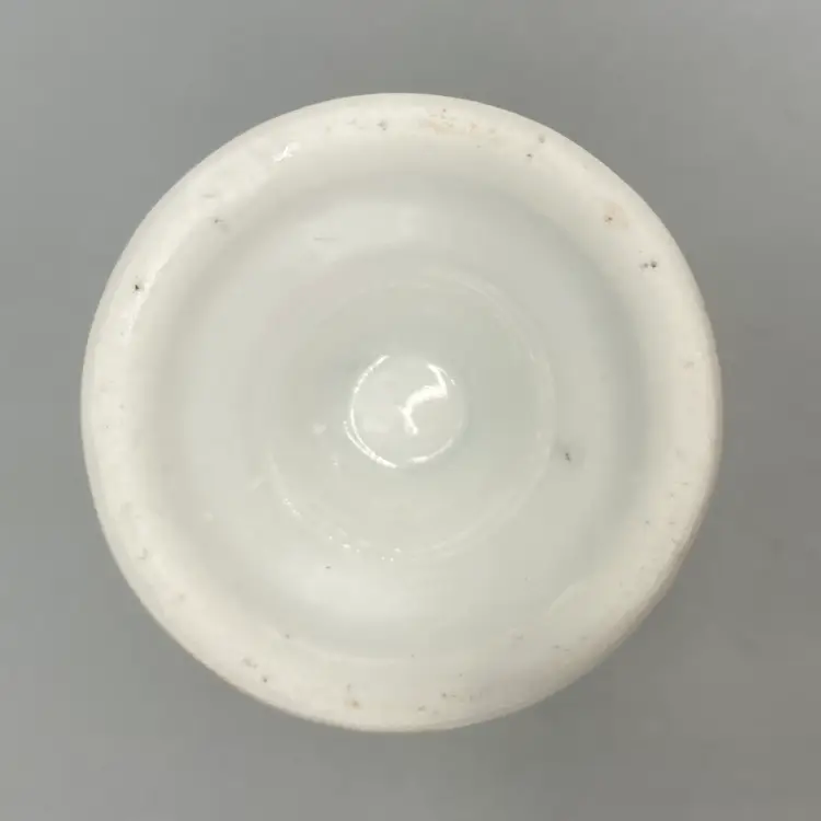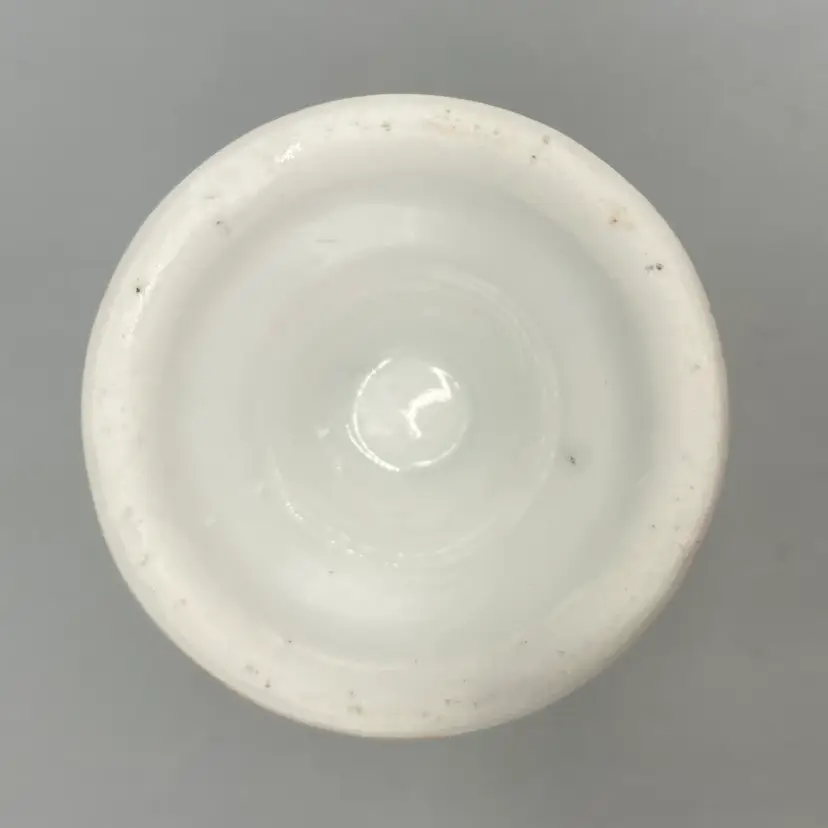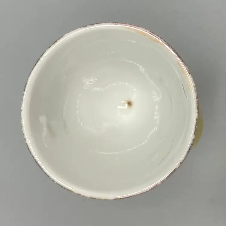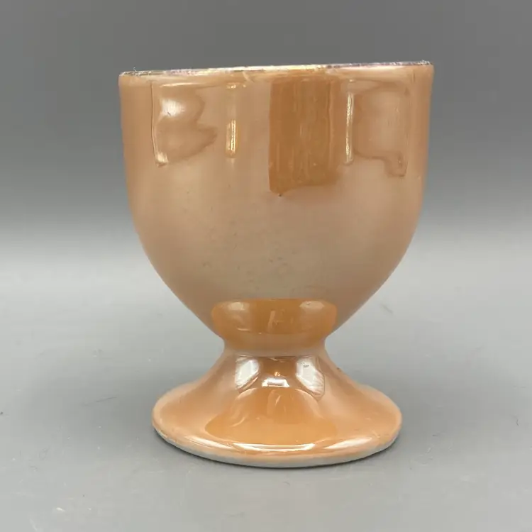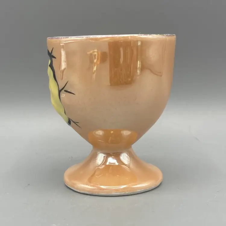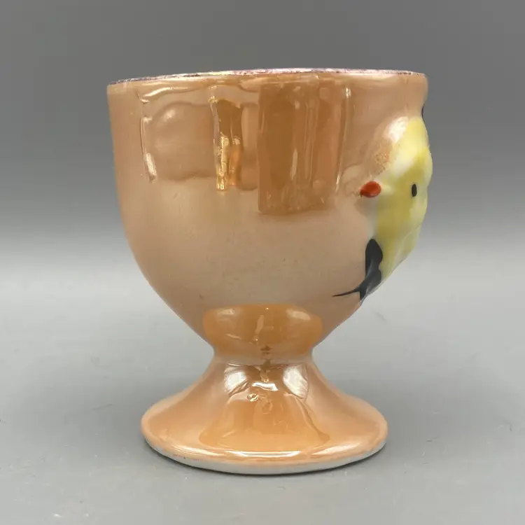 This egg cup is in good condition. There is one dark spot on the bottom inside of the cup, clearly seen in pictures. It measures approximately 2 1/4" tall x 2" across the top x 1 1/2" across at the base.
