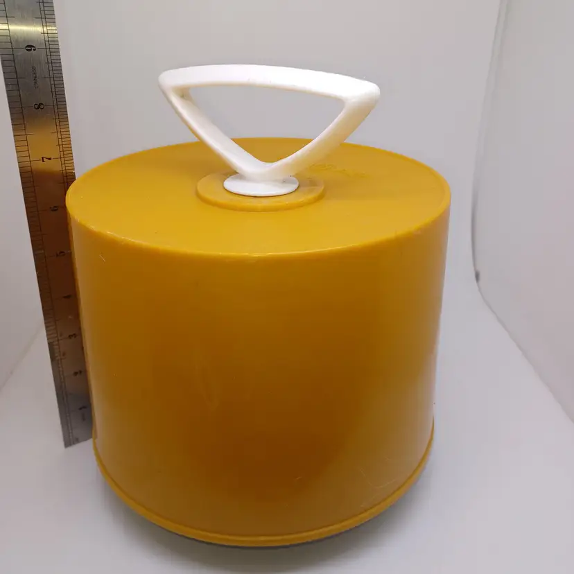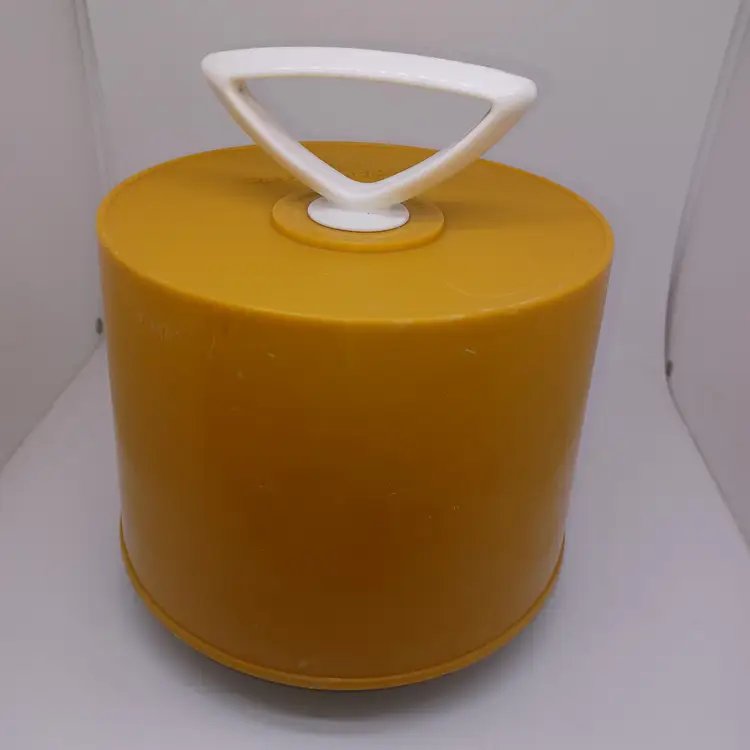Vintage 45 rpm DISK-GO-CASE Record Holder/Tote - Yellow With White Handle Has some scratches due to age. overall in good condition.