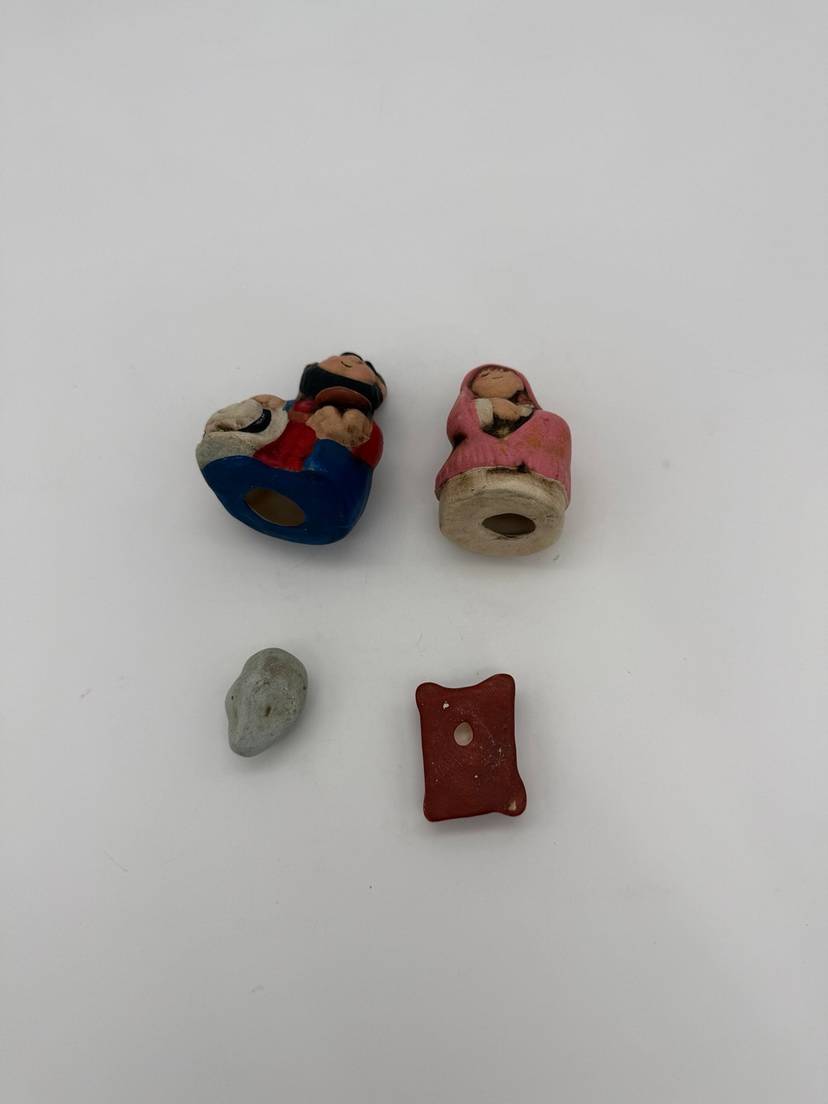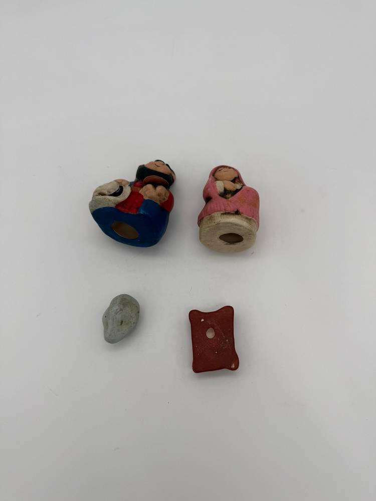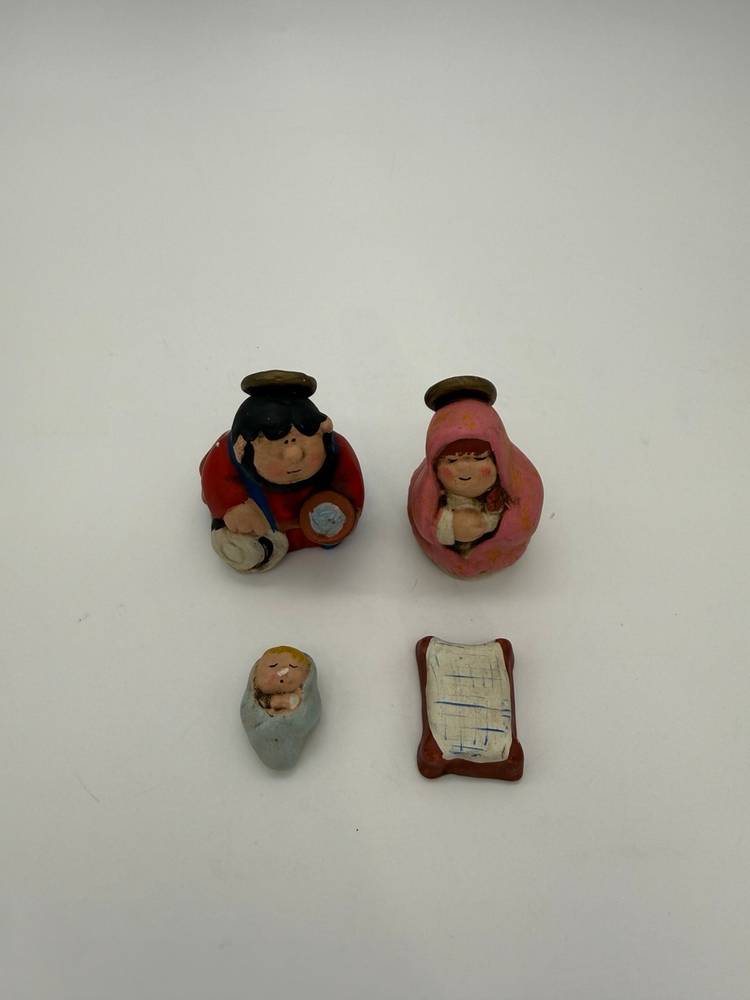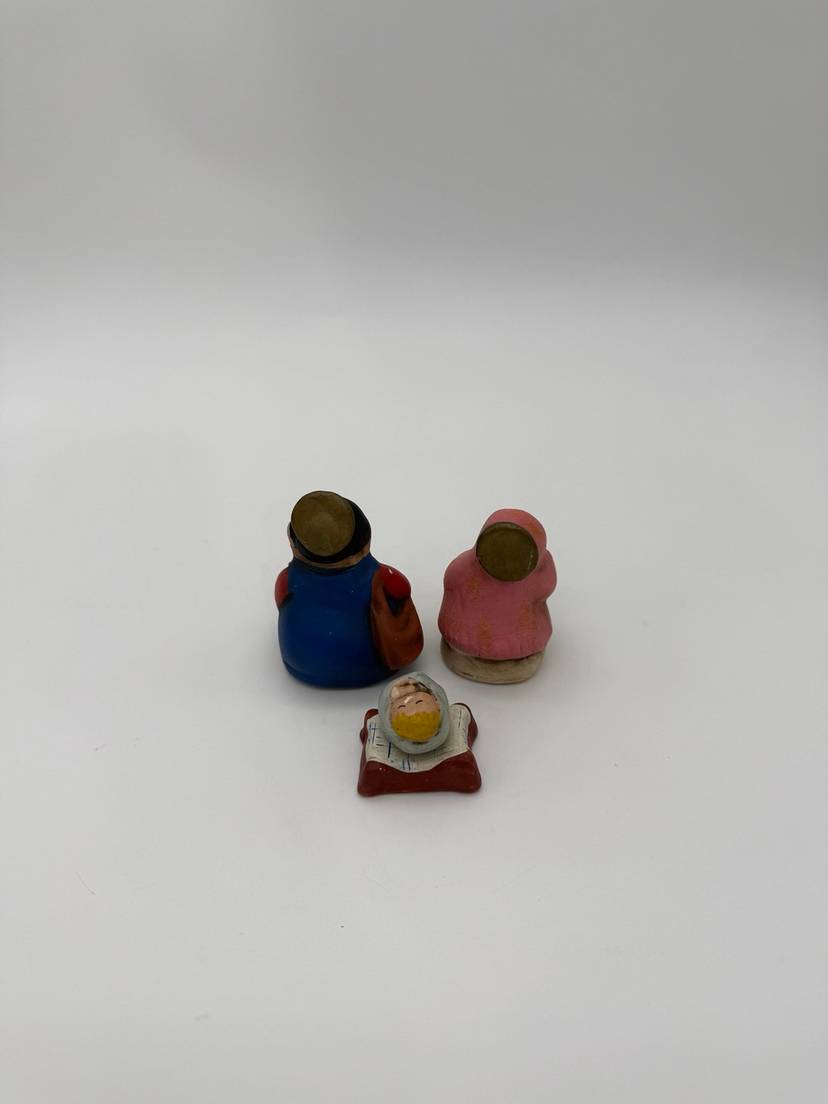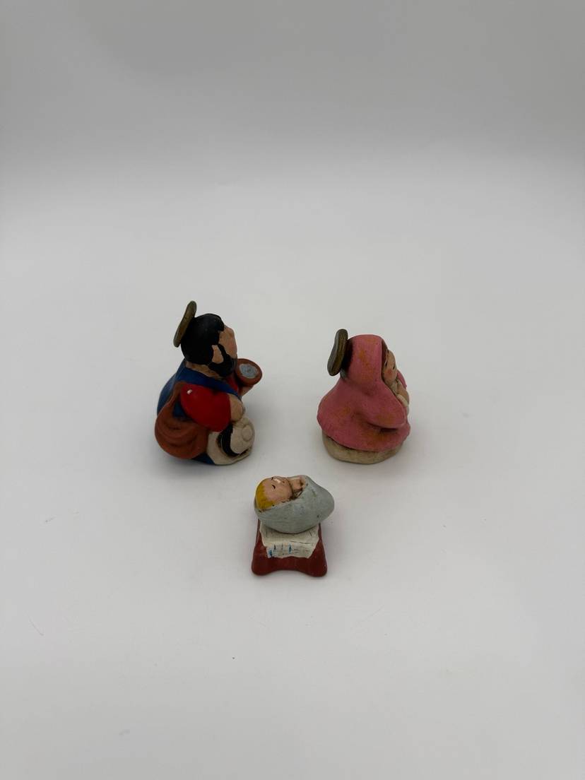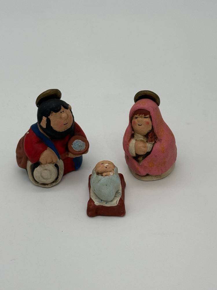 These vintage set of 4 Peruvian Christmas Nativity small figurines is handcrafted from ceramic Pottery, featuring detailed figures of Mary, Joseph, and Baby Jesus in a manger. The multicolored figurines are 3 inches tall and are part of a traditional Christmas collection, perfect for collectors or those looking to add a unique touch to their holiday decor. Handmade with care, these original Nativity figurines are a charming addition to any holiday display.