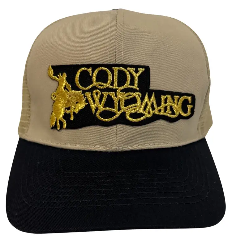 The Vintage 90's Cowboy Cody Wyoming Gold Lettering Trucker Style Snapback by Otto is a stylish and versatile hat perfect for unisex adults. Made from a combination of polyester and cotton, this adjustable snapback features a solid beige color with a mesh back for breathability. The Western theme, rodeo, cowboy, outdoor, and 90s-inspired design make it a standout accessory for travel, parties, casual outings, or workwear. With its vintage charm and durable canvas fabric type, this hat is a must-have for anyone looking to add a touch of the wild west to their wardrobe.