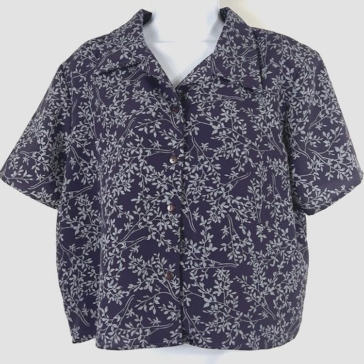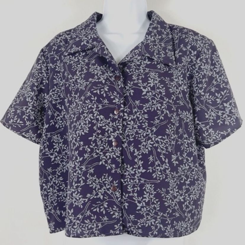 Vintage 90’s Women’s Cropped Blouse Size XL Floral Button Up Short Sleeve Boxy