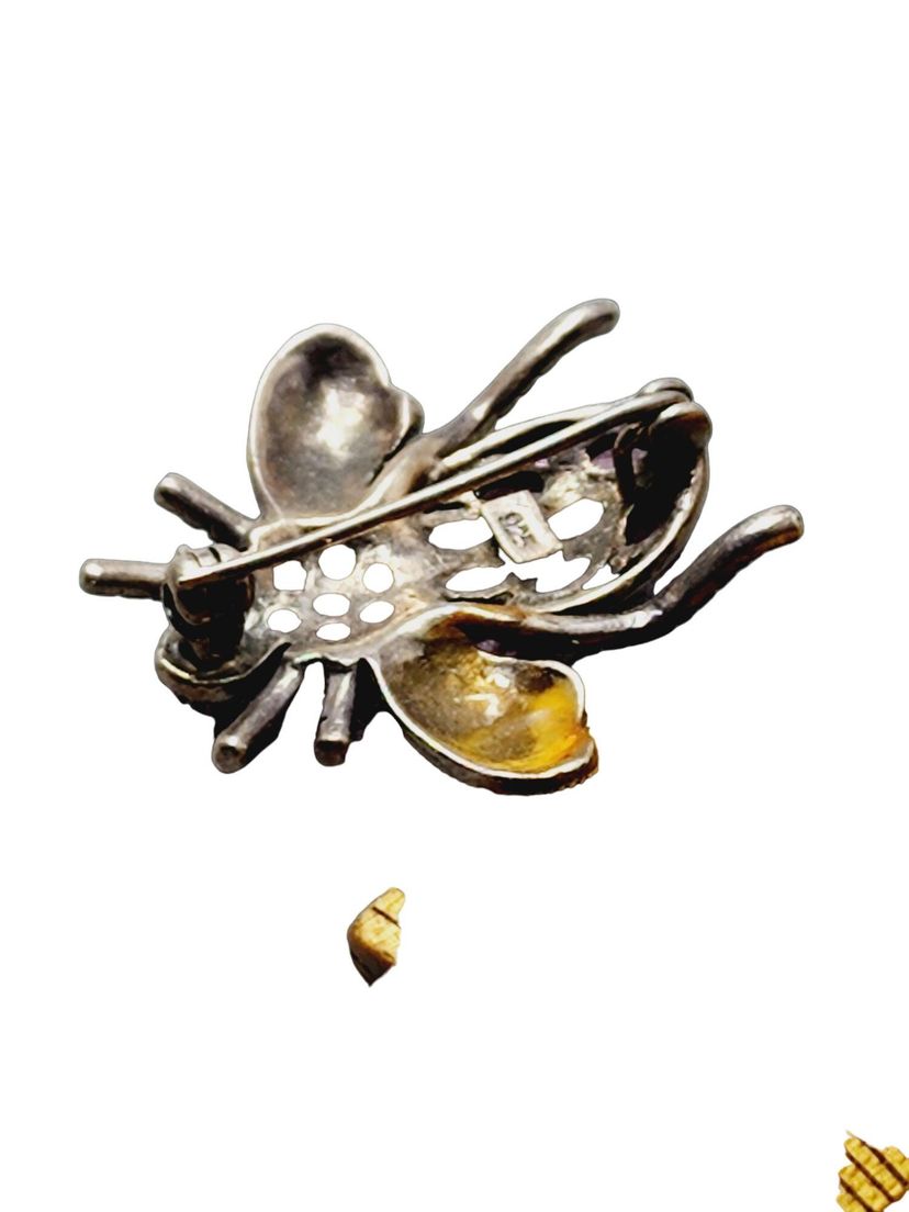 Vintage 925 Sterling & Amethyst Fly/Bug Brooch (A1382)