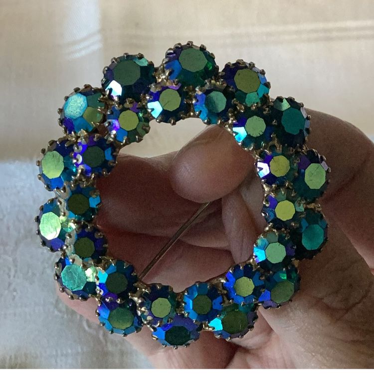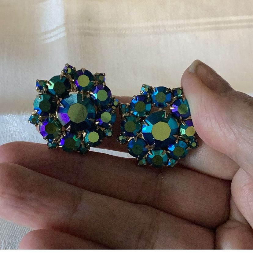Not marked. Brooch 2” and earrings 1”. Very good condition. Gorgeous set.