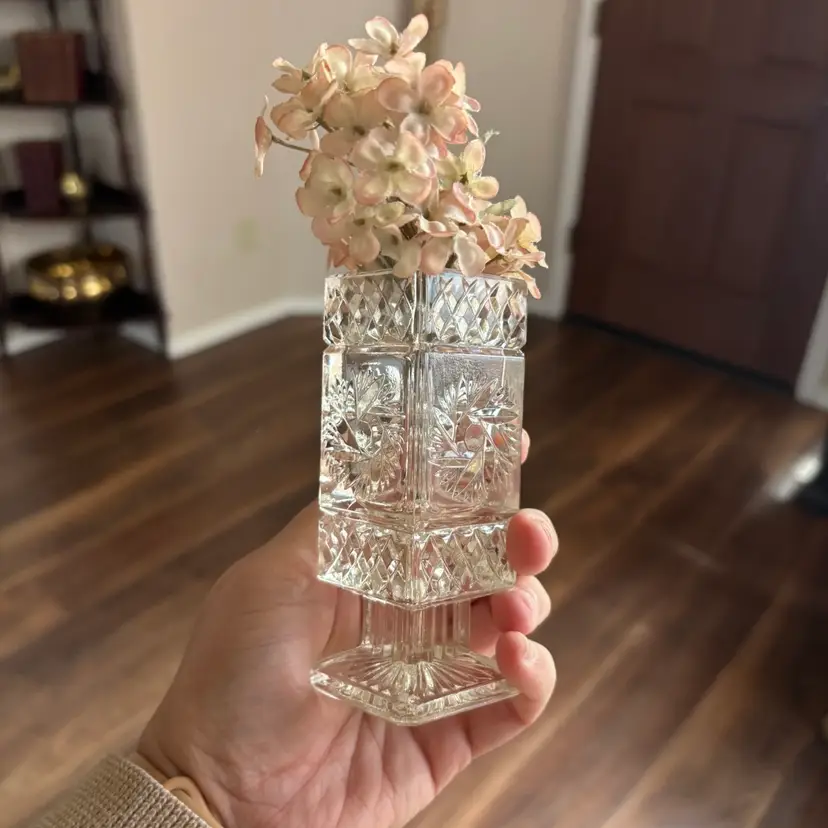 Vintage ABP Lead Crystal Footed Square Bud Vase