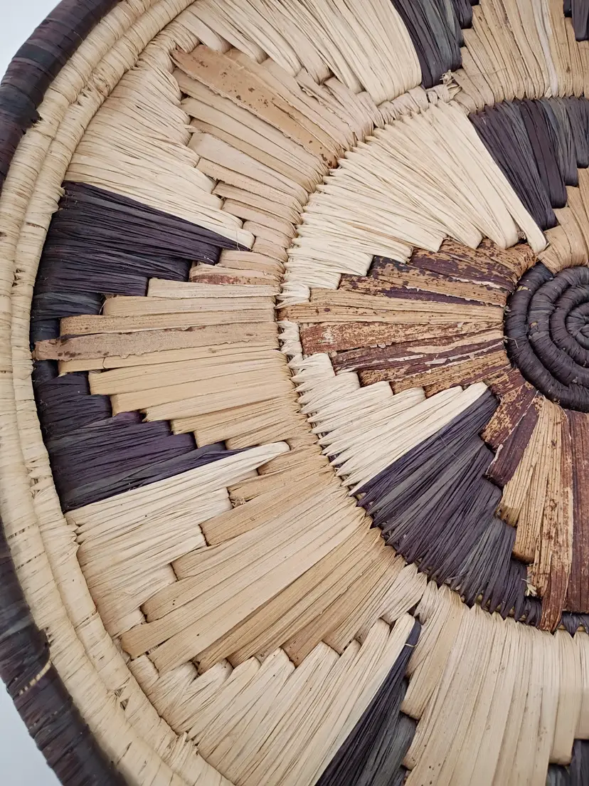 This is a gorgeous woven coil basket from Africa. It has a loop for hanging and is in excellent vintage condition.