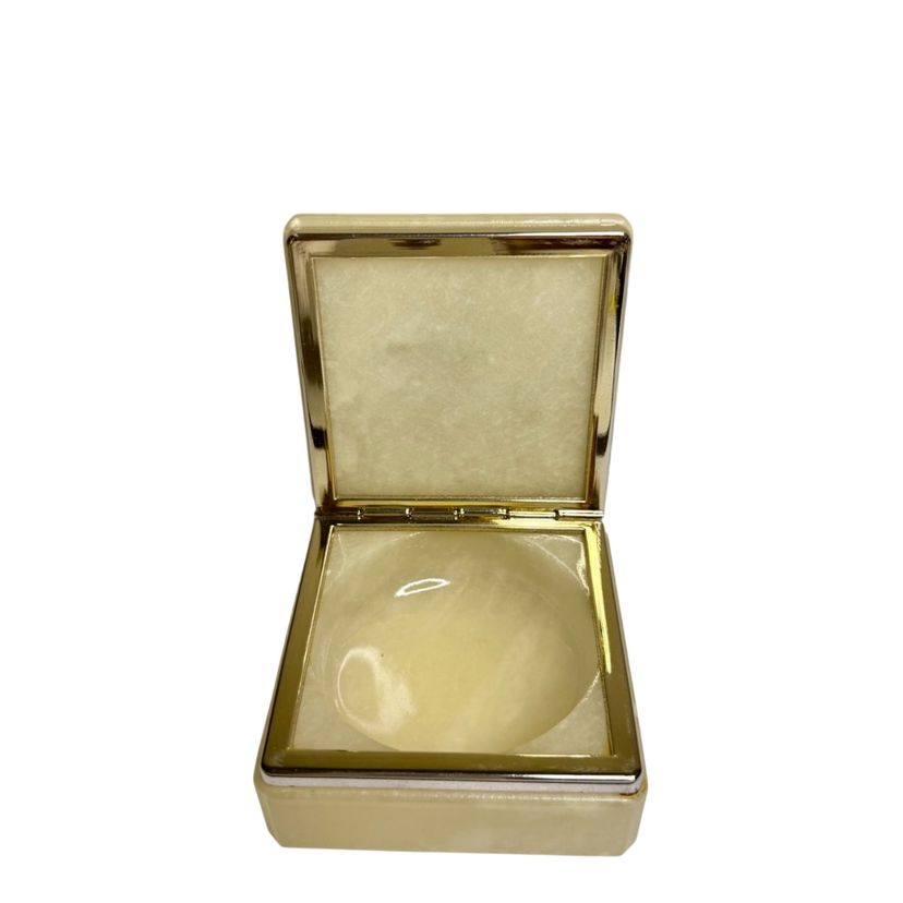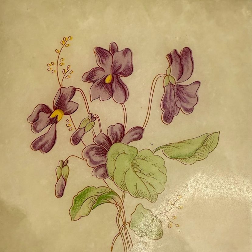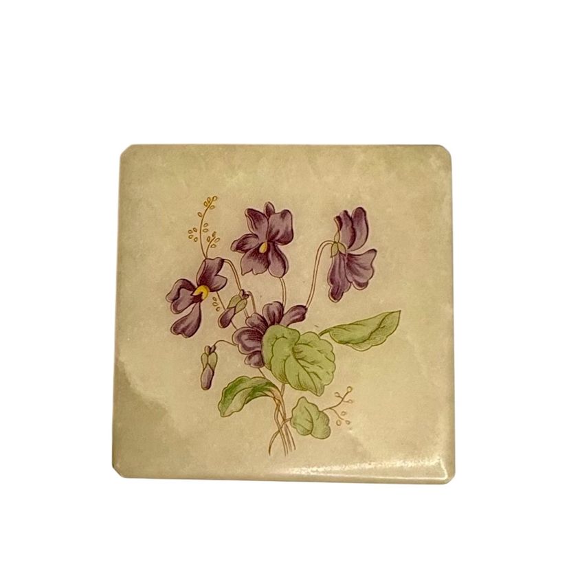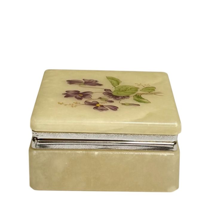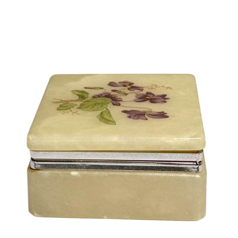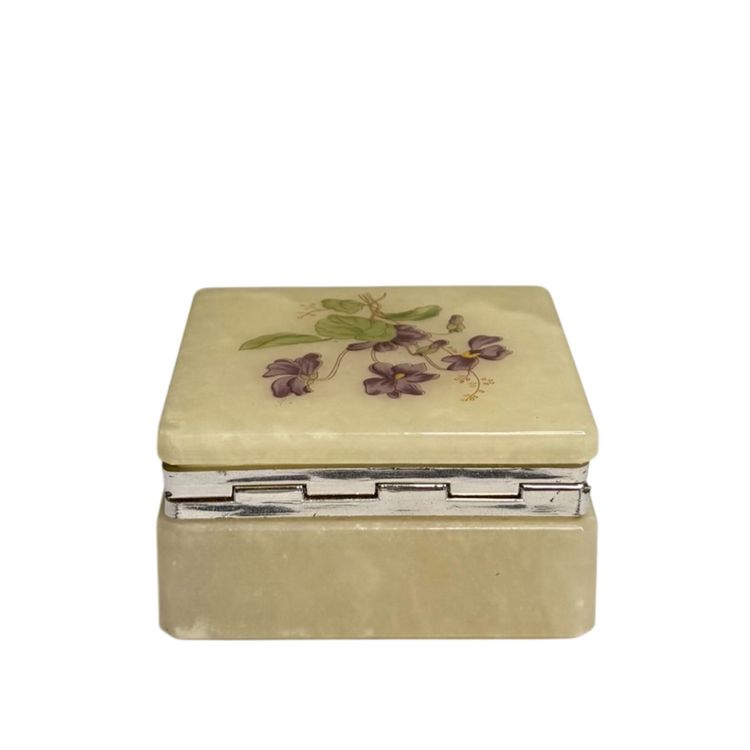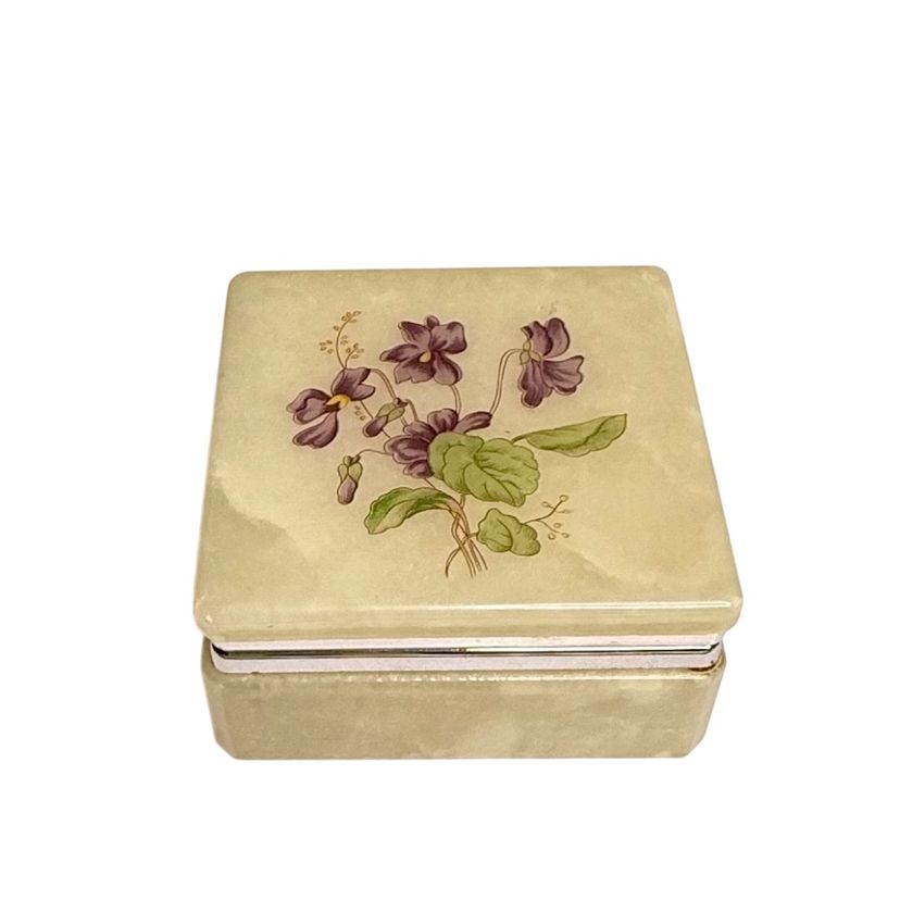 Vintage Alabaster Trinket Box Hinged Lid Floral Violet.
