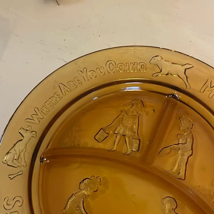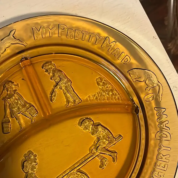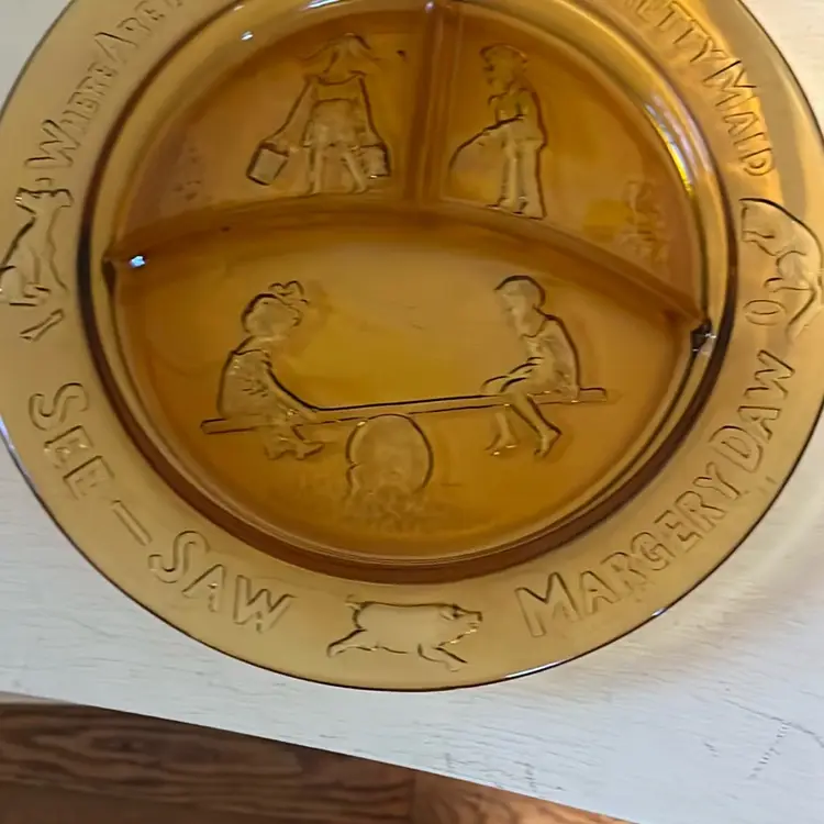 See saw Margery Daw amber 3 section child plate, great condition, 8.5” round