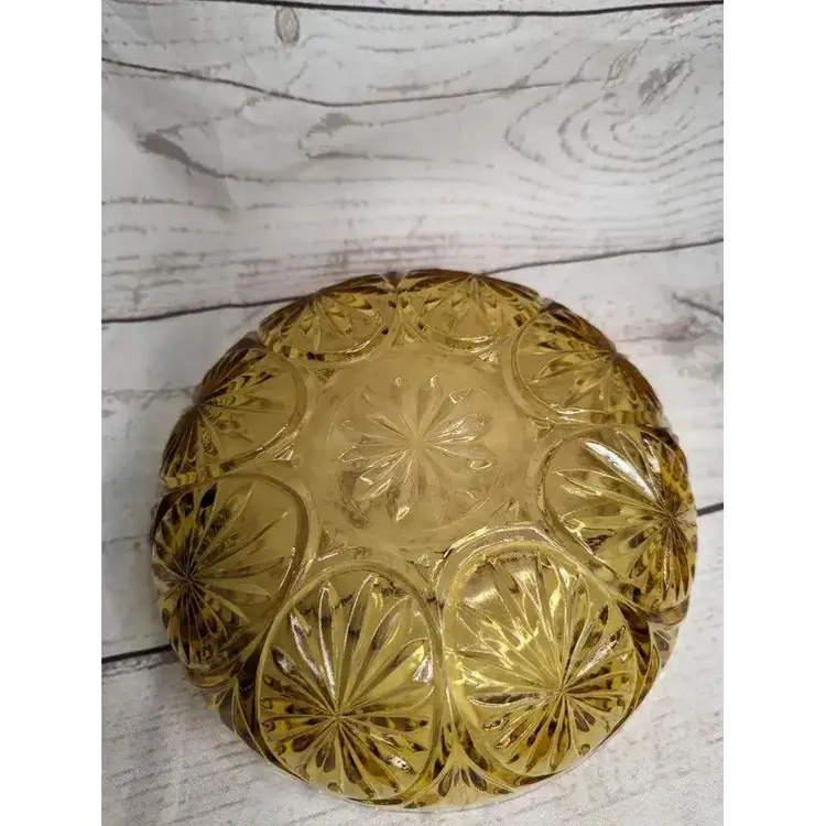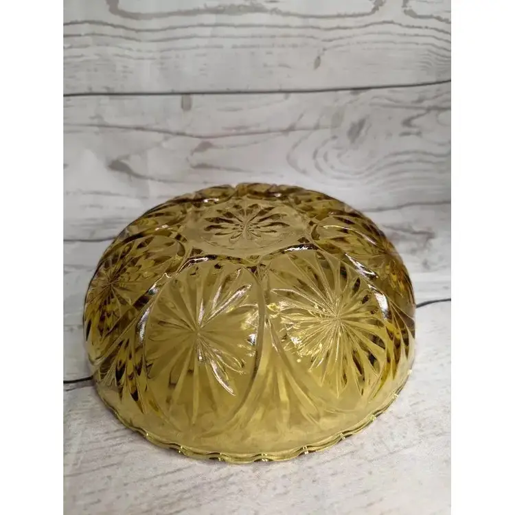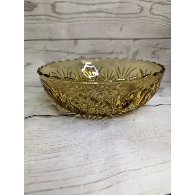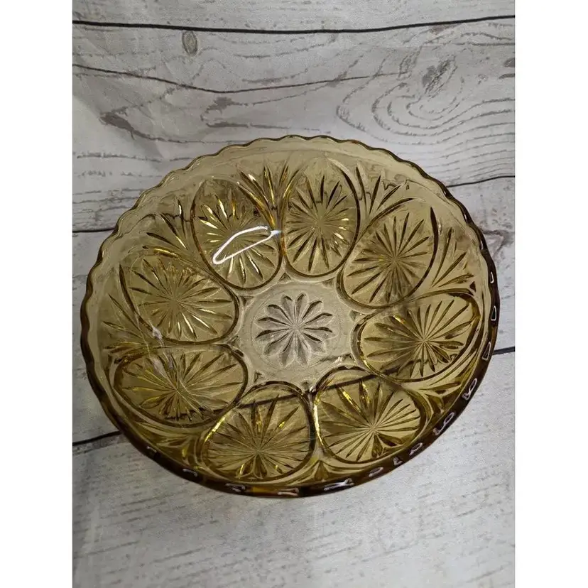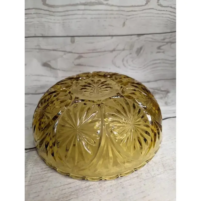 Vintage Anchor Hocking Amber Honey Gold Star Medallion Serving Bowl - Measures Approximately 8" d and 3" h