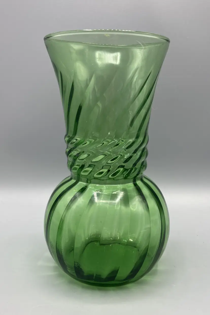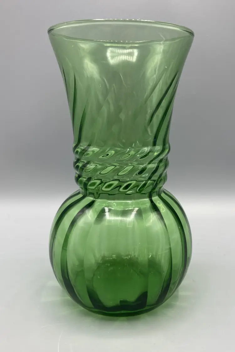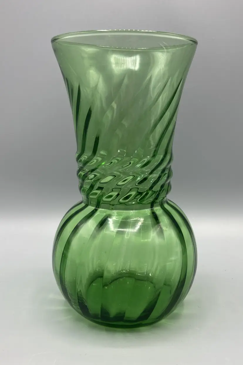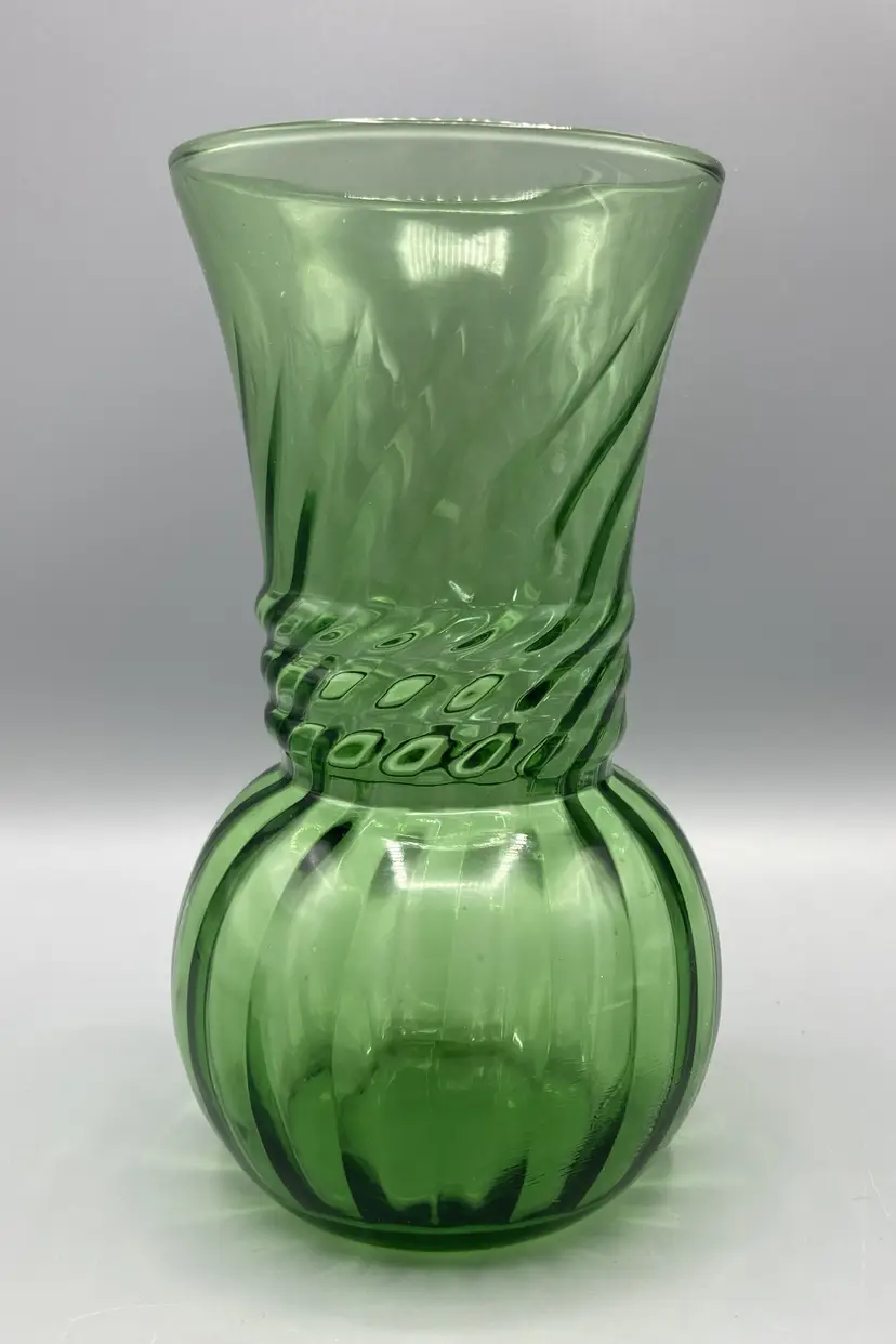 This vase is in good condition. It measures approximately 6 1/4" tall x 3 1/2" wide at the widest point and a 3 1/4" opening.
