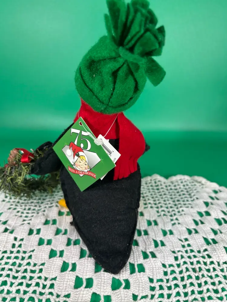 Vintage Annalee Christmas penguin with wreath, 7” H