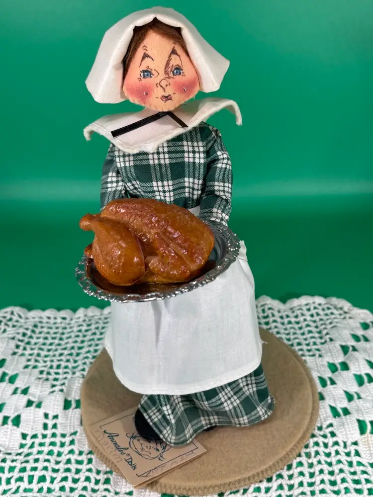 Vintage Annalee Thanksgiving Pilgrim Lady doll, folk art # 3164 1991 10” H