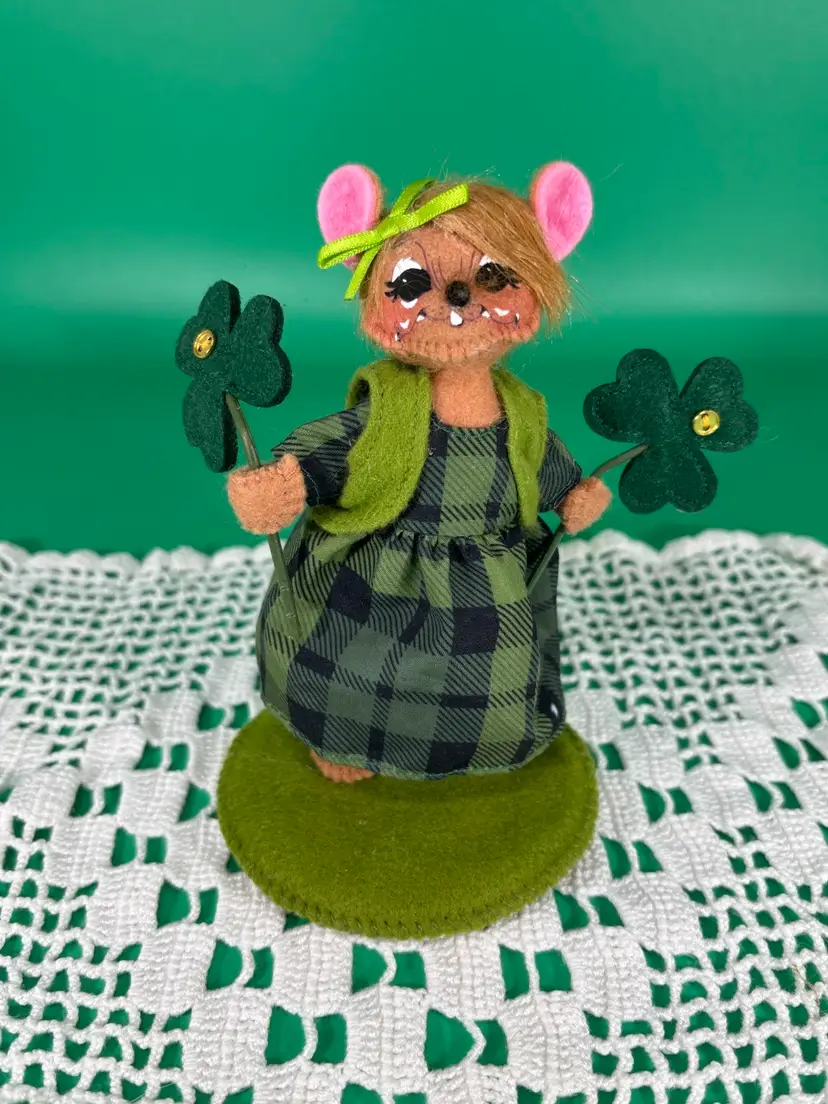 Vintage Annalee shamrock girl mouse , 5” H