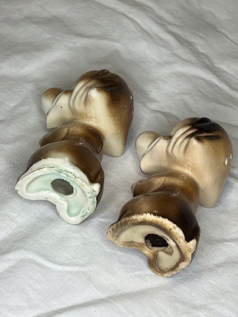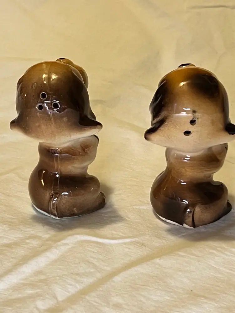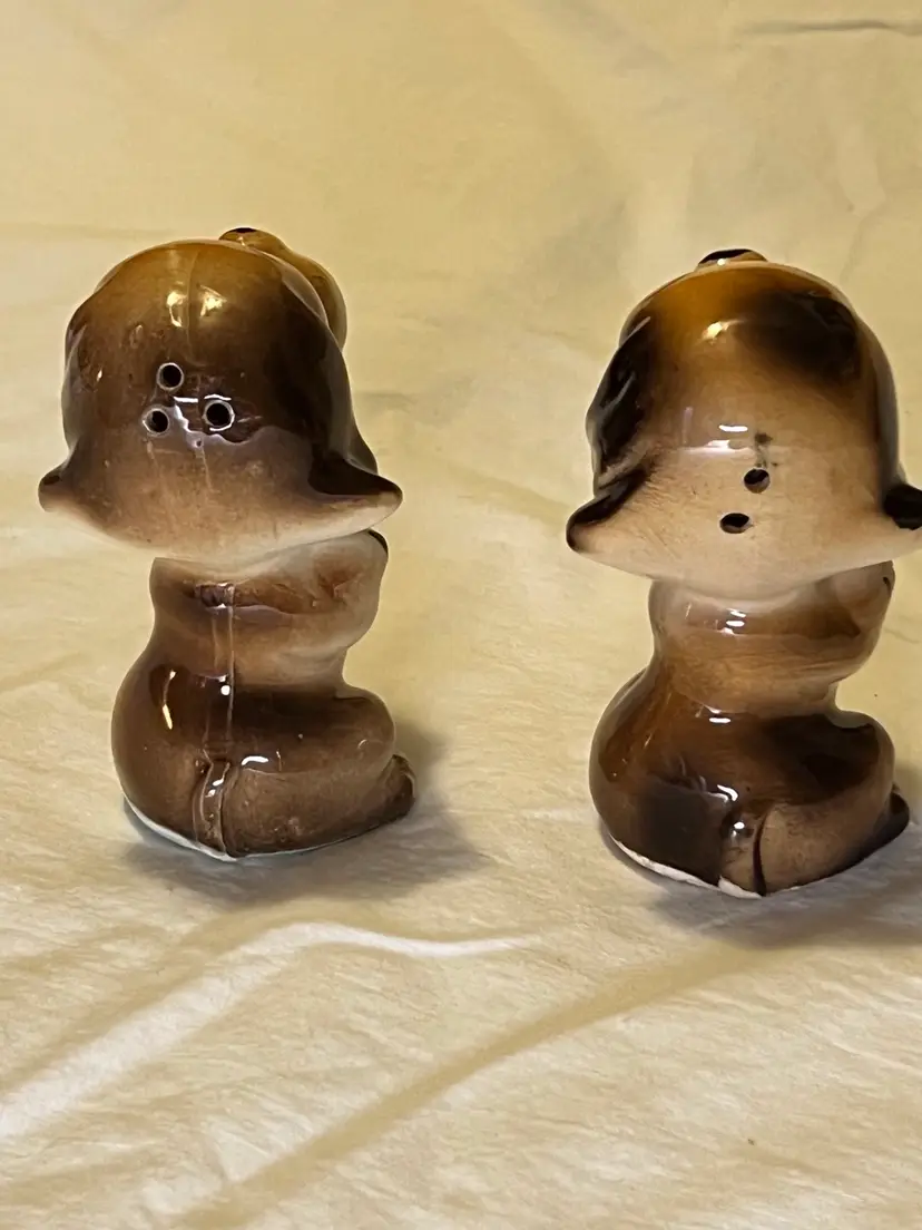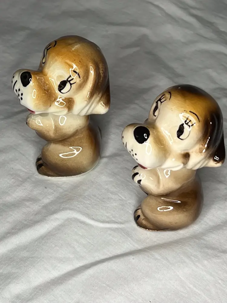 Pair of kitschy anthropomorphic doggy salt and pepper shakers in great condition.
