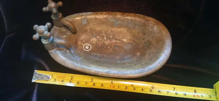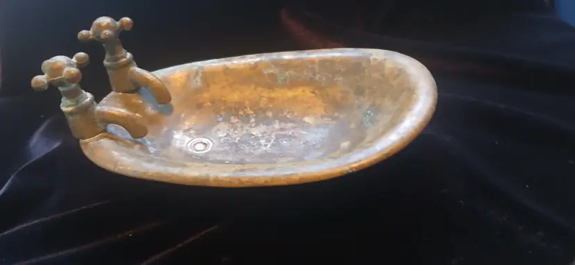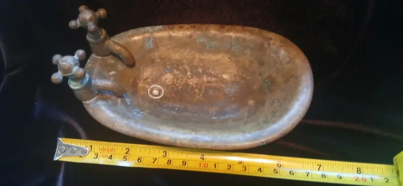 I was told it was sourced at an antique store 50 years ago.I love this piece but Im downsizing and simply don't have room or a proper space to do it justice. I left the original patina im leaving that to the buyer to decide.