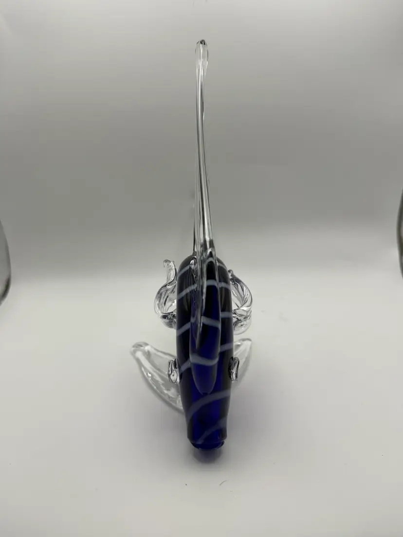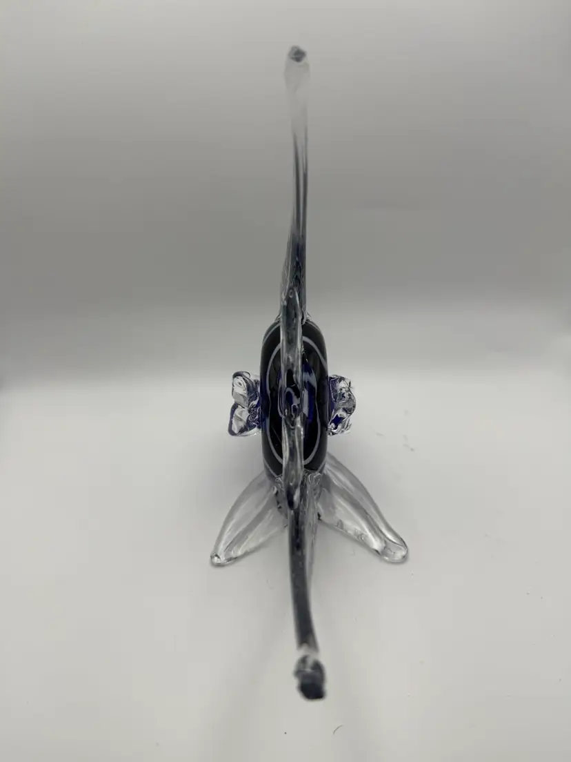 Vintage Art Glass Blue And White Striped Glass Angelfish Figurine