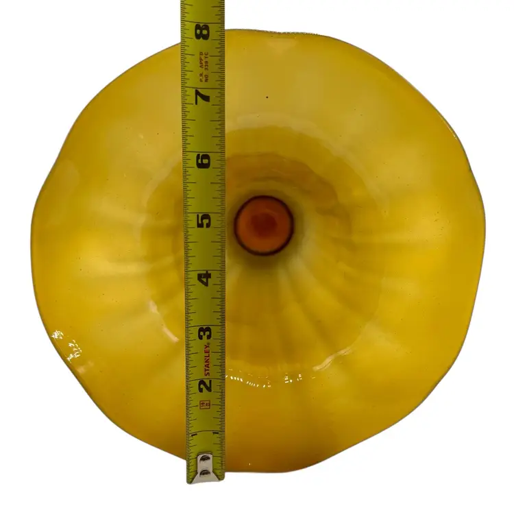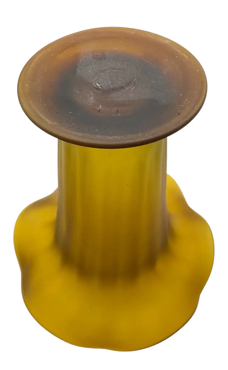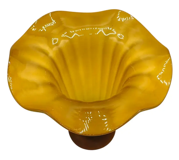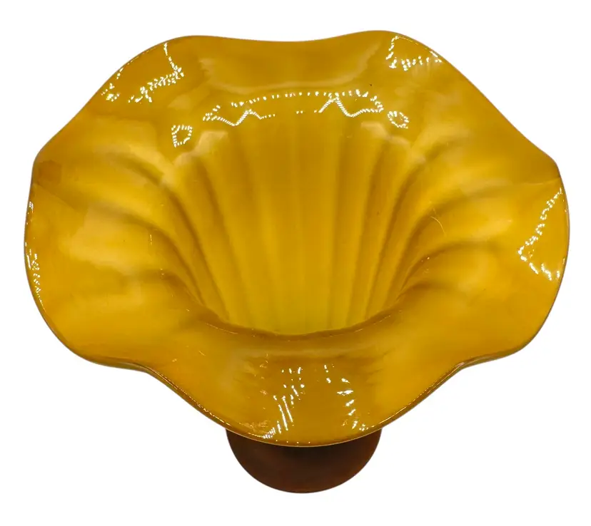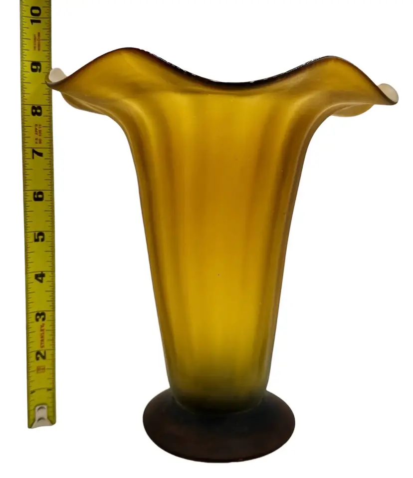 Vintage Art Glass Footed Trumpet Vase Satin Optic Amber Flower Ruffled 8.75”