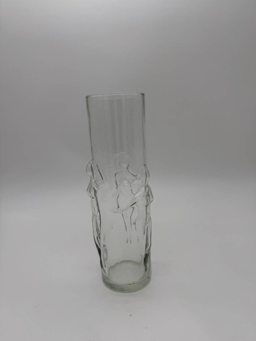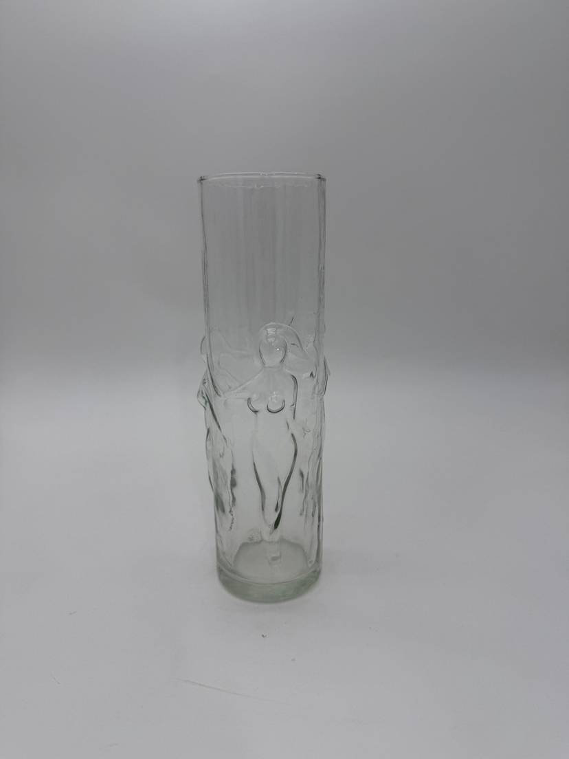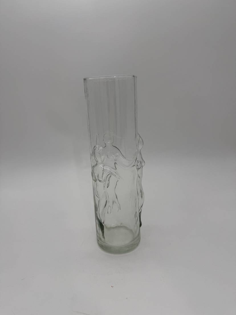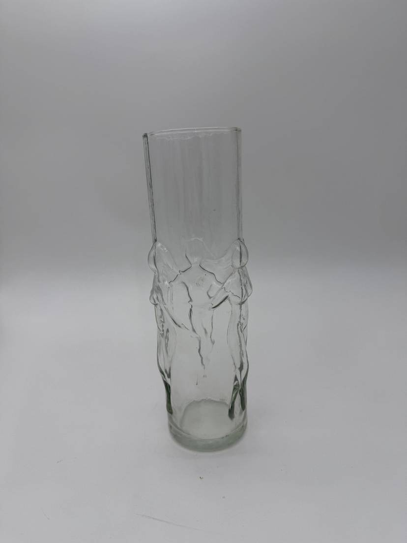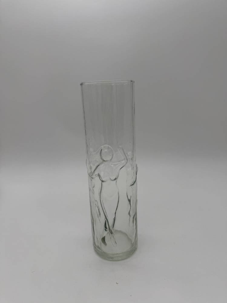 The Vintage Art-Libbey La Femme 3D Nude Dancing Woman Glass Vase is a stunning 8-3/4” clear glass piece with a solid, 3D embossed design of a nude dancing woman. This beautiful vase is perfect for all occasions and features an Art Nouveau style, adding a touch of elegance to any space. Handcrafted in the United States, this original piece is a unique and eye-catching addition to any collection of decorative collectibles. The Vase is in very good condition for its age. The Vase does appear to have some oxidation inside and can be removed according to the buyer’s preferences.