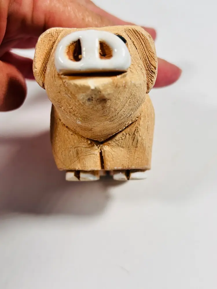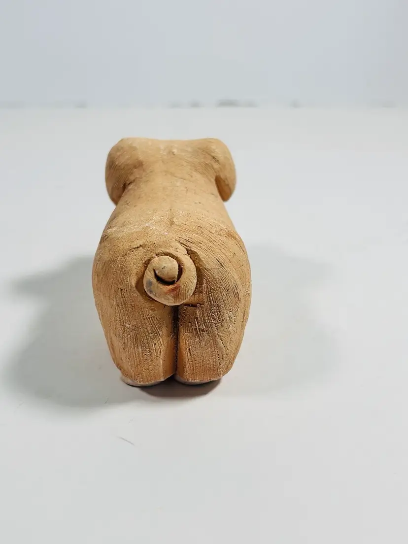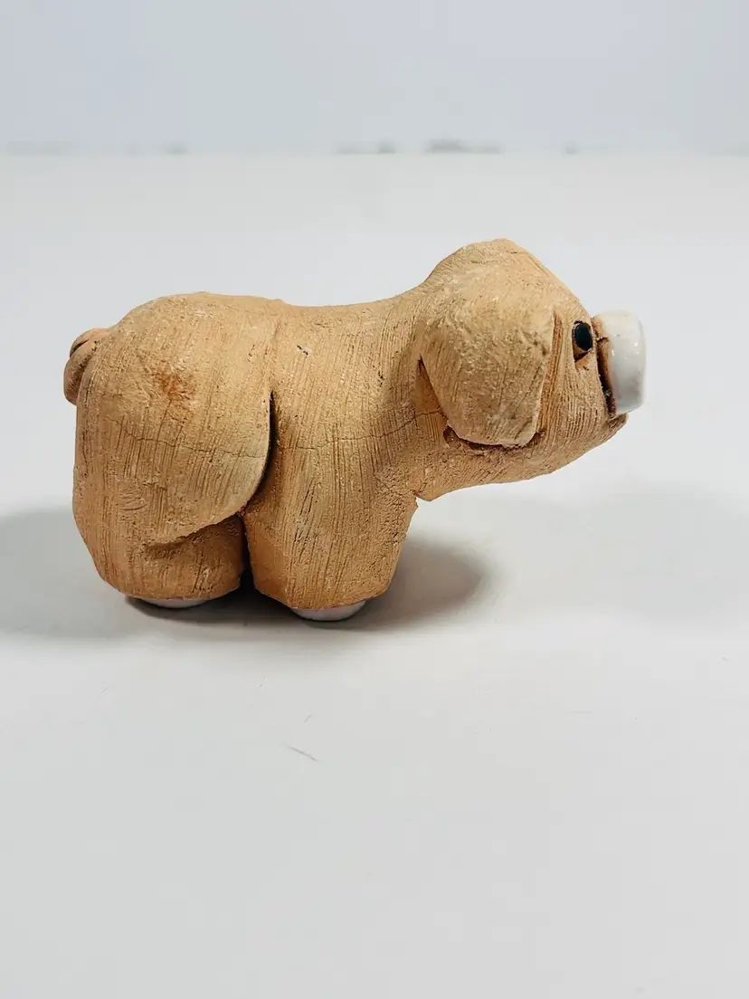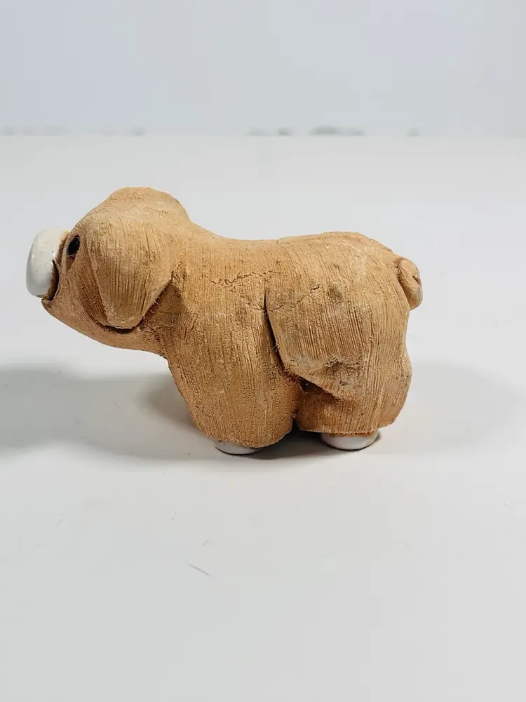 This vintage Artesania Rinconada Uruguay clay pottery pig is a unique addition to any collection. The handmade figurine features intricate details and is made from high-quality clay. The pig's origins can be traced back to Uruguay, and it is clear that it was crafted with care.