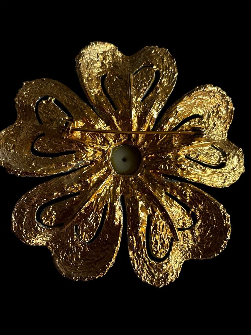 The Vintage ART Arthur Pepper Enamel Flower Brooch is a stunning piece of jewelry that embodies the "Flower Power" trend. With a vibrant multicolor design featuring a beautiful flower as the main focal point, this brooch is sure to make a statement. Handcrafted by the renowned brand Art, this enamel brooch is a unique and eye-catching accessory. In perfect condition.