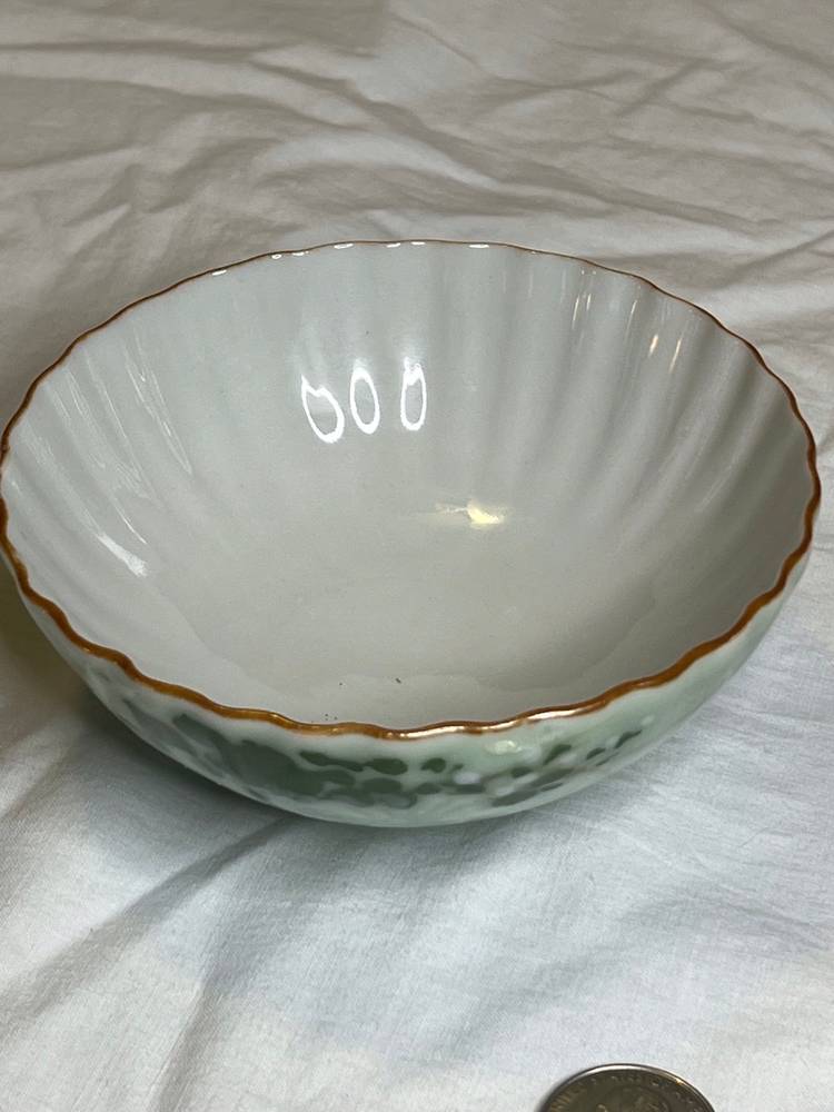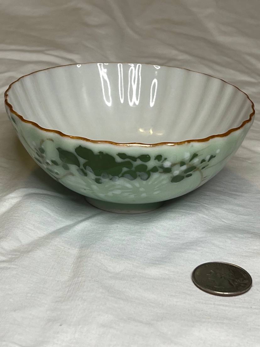 Fantastic vintage Asian rice bowl with fluted panels done in a pretty celadon glaze.