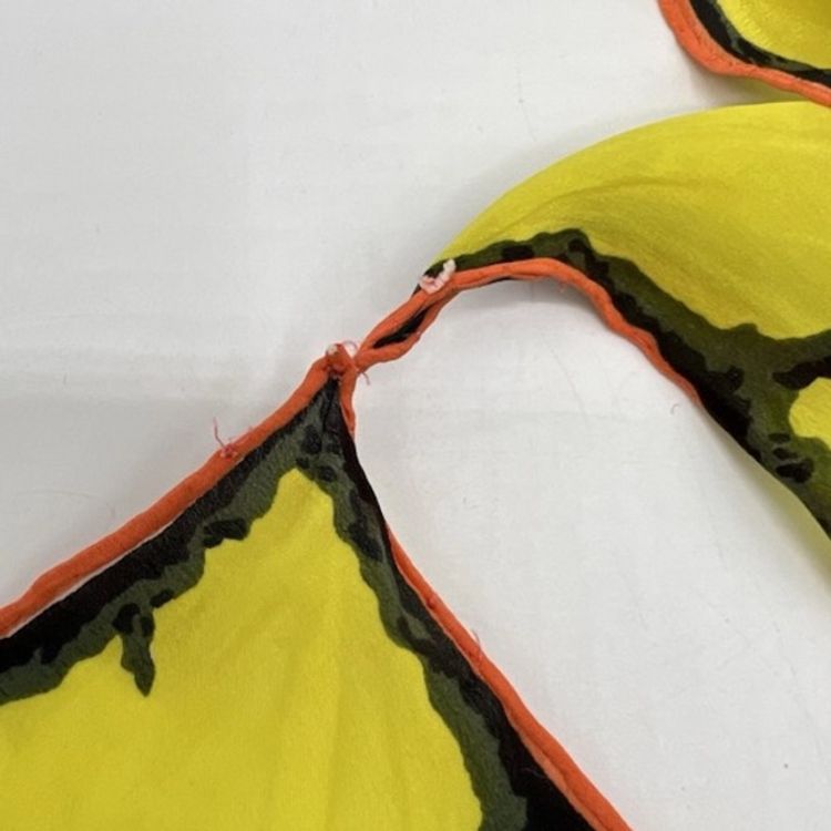 Very good condition, no stains or rips, some creasing at edges/middle. NO tag of origin or content. Very nice vintage silk quality with rolled edges.