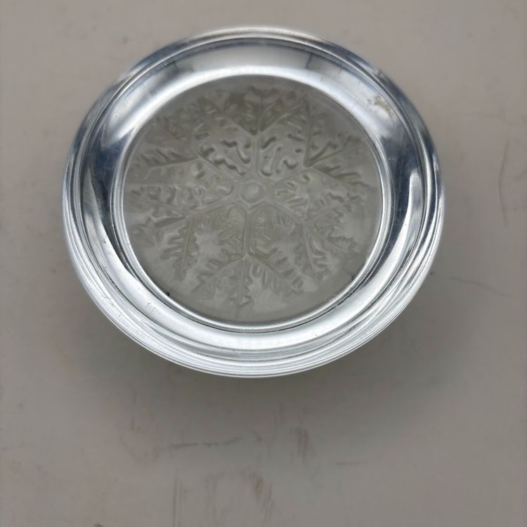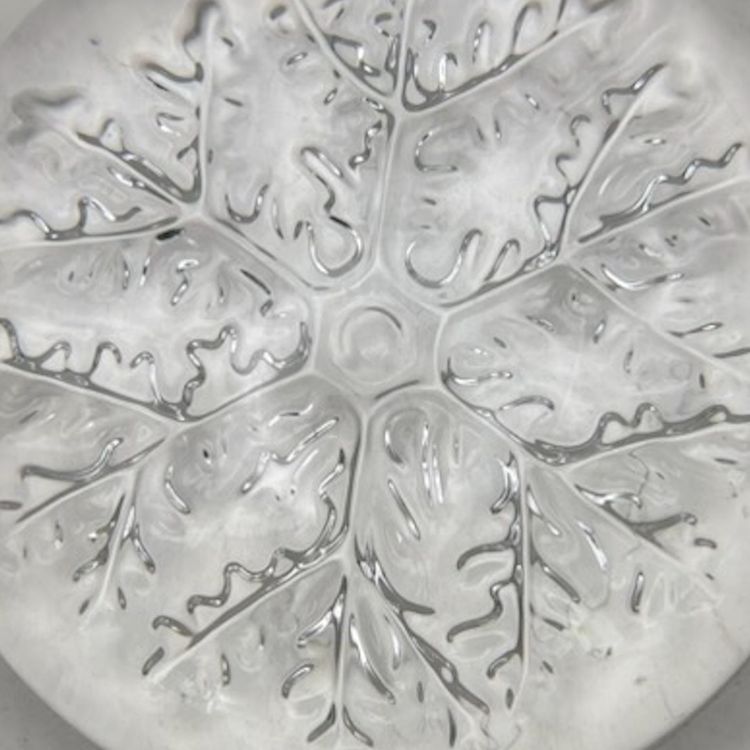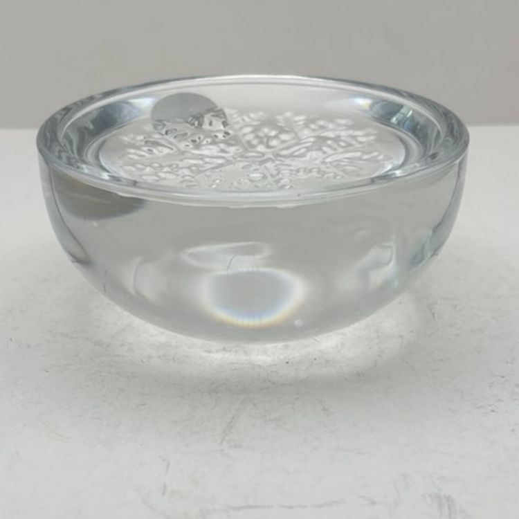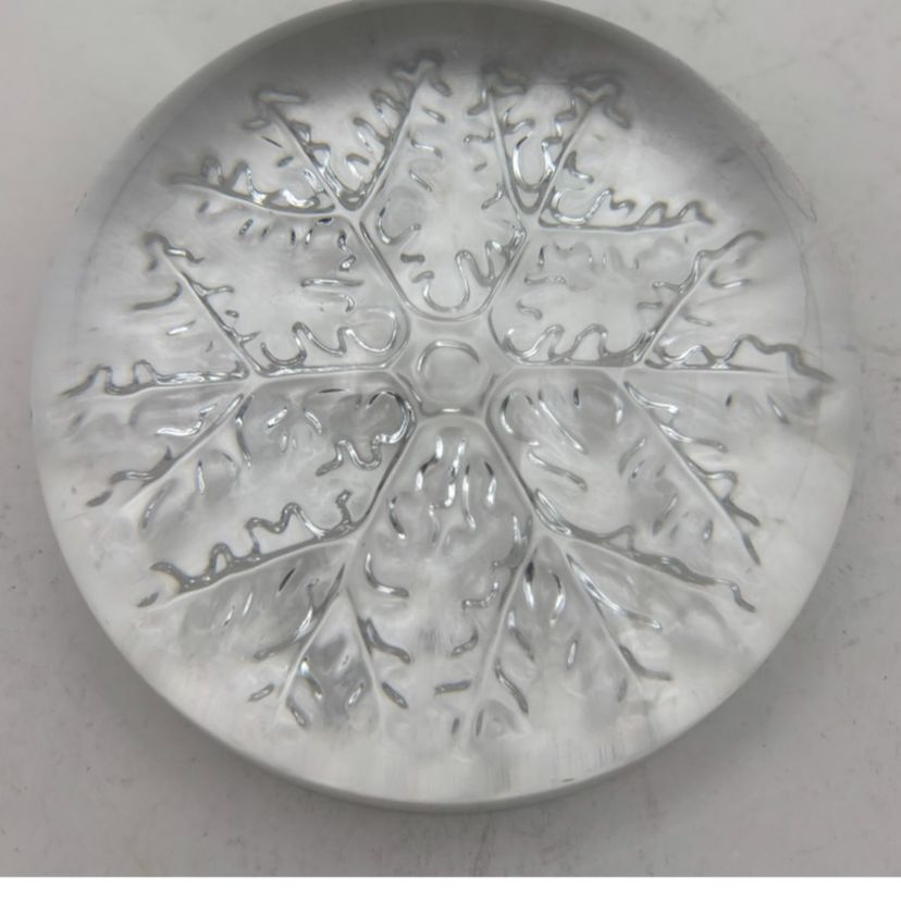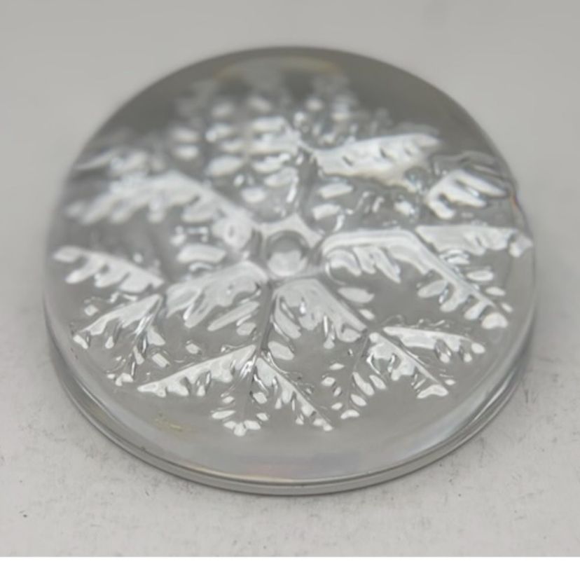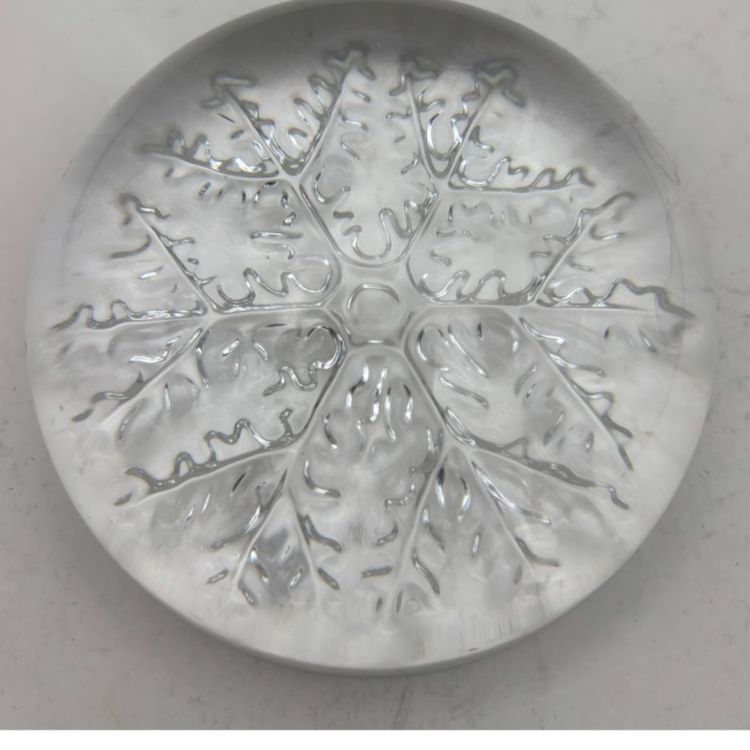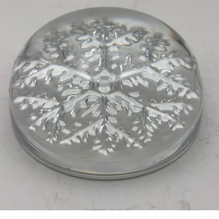 Intricate snowflake pattern. Original box, sticker and info sheet. Made in France. No chips cracks or repairs. Approx 3.5” diameter.
