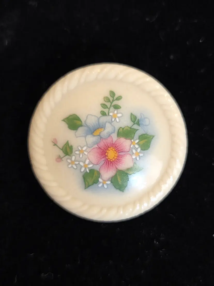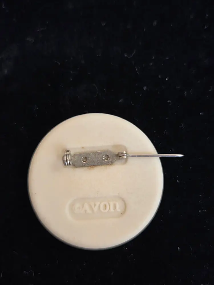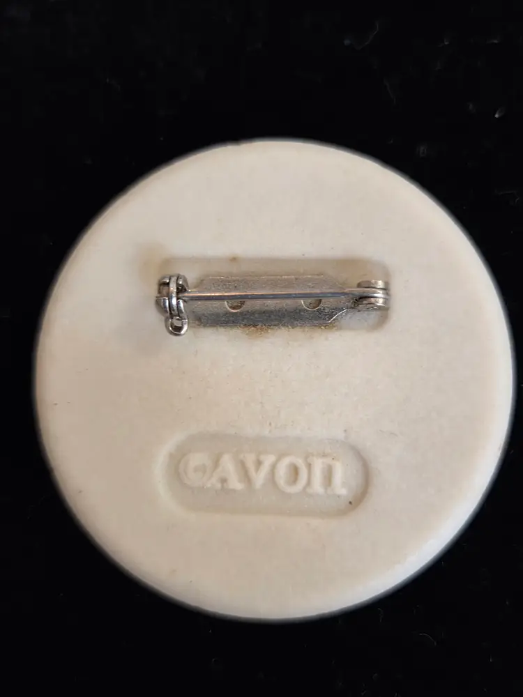 Vintage Avon spring bouquet porcelain brooch 1 1/2". Brooch is in good used condition. Brooch does have a little discoloration on back where pin was glued.
