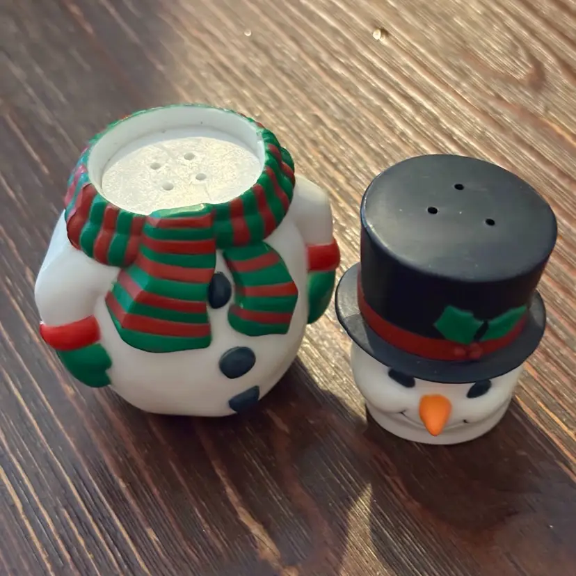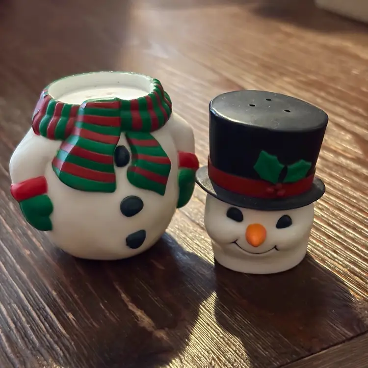 AVON CHRISTMAS TOP HAT SALT AND PEPPER SHAKER SNOWMAN VINTAGE LIKE NEW CONDITION HAD ORIGINAL STOPPERS!