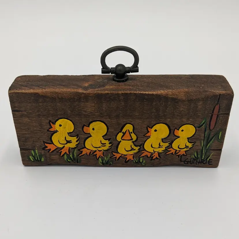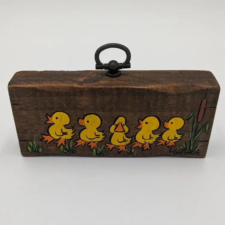 Adorable. Hand painted by Artist L. Guthrie, as shown in picture#6. Has an attached hook on the top to hang, as shown in picture #5. Shipped with USPS Ground Advantage Mail.