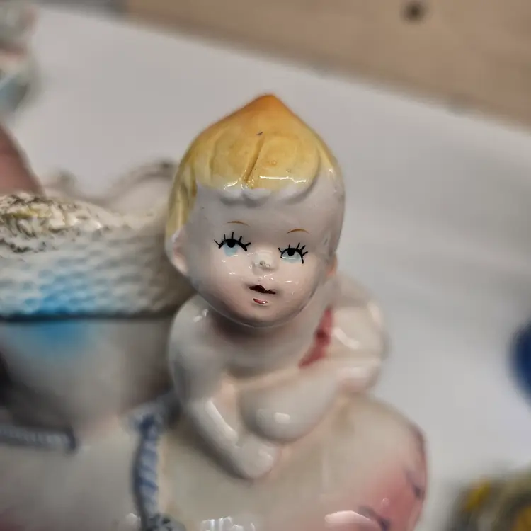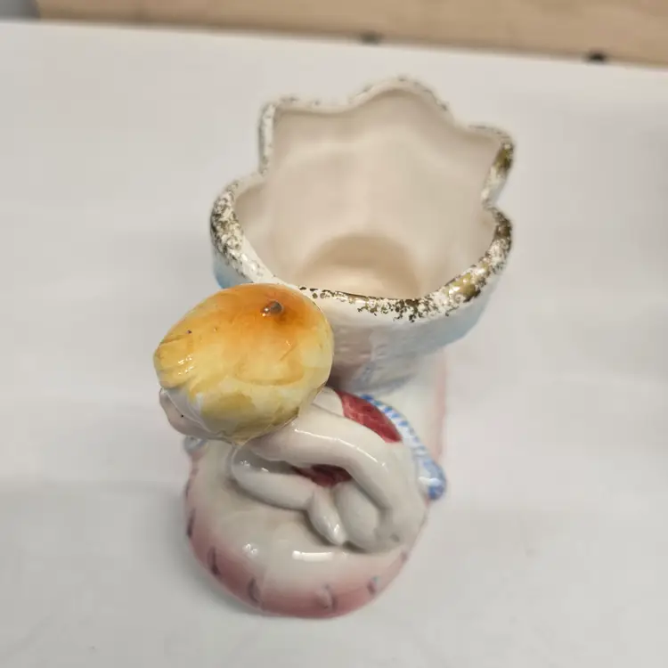 End of nose feels a bit rough but cannot tell if chipped or a misfire of the glaze. Otherwise in very good condition. Japan sticker on bottom.