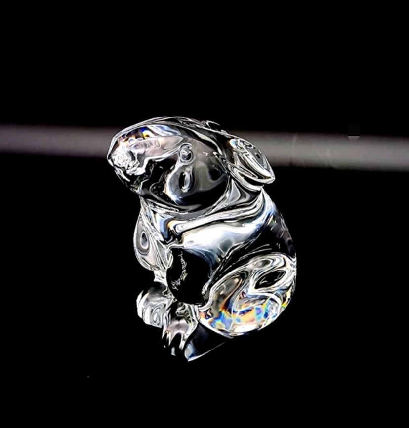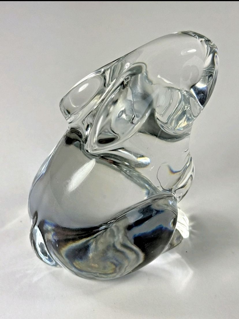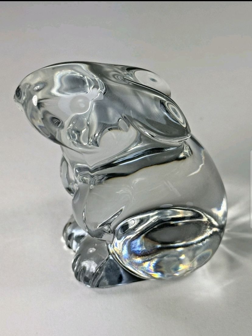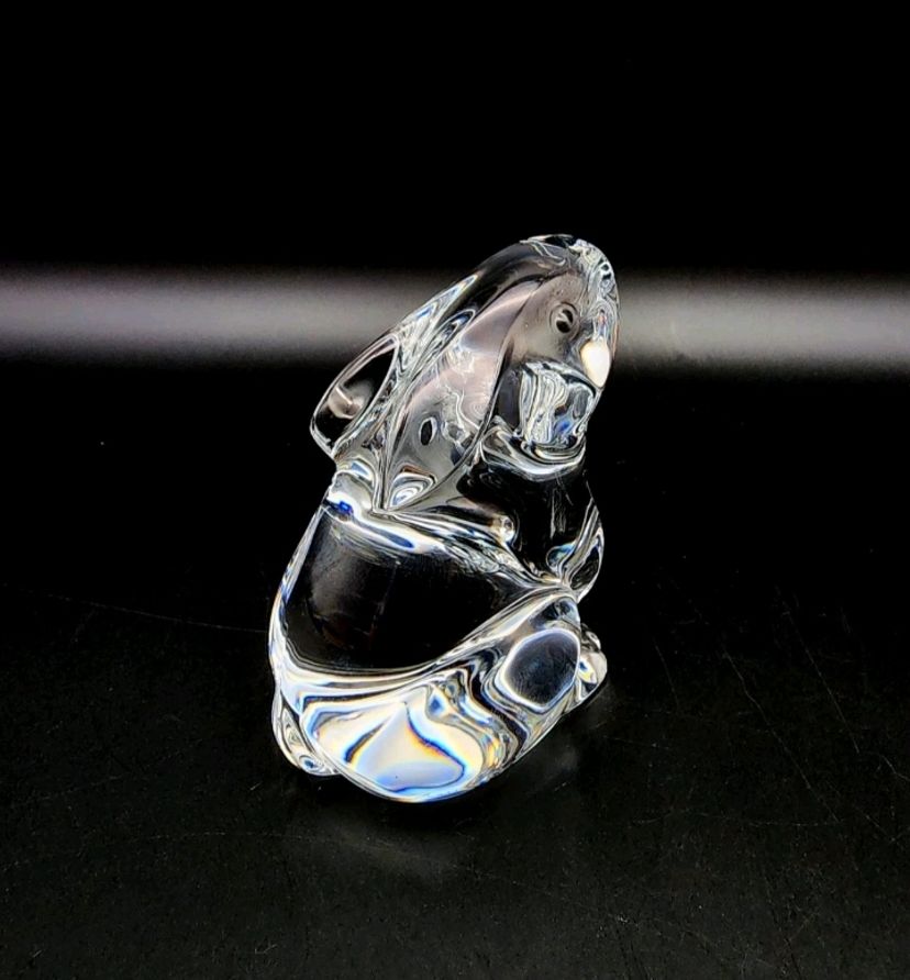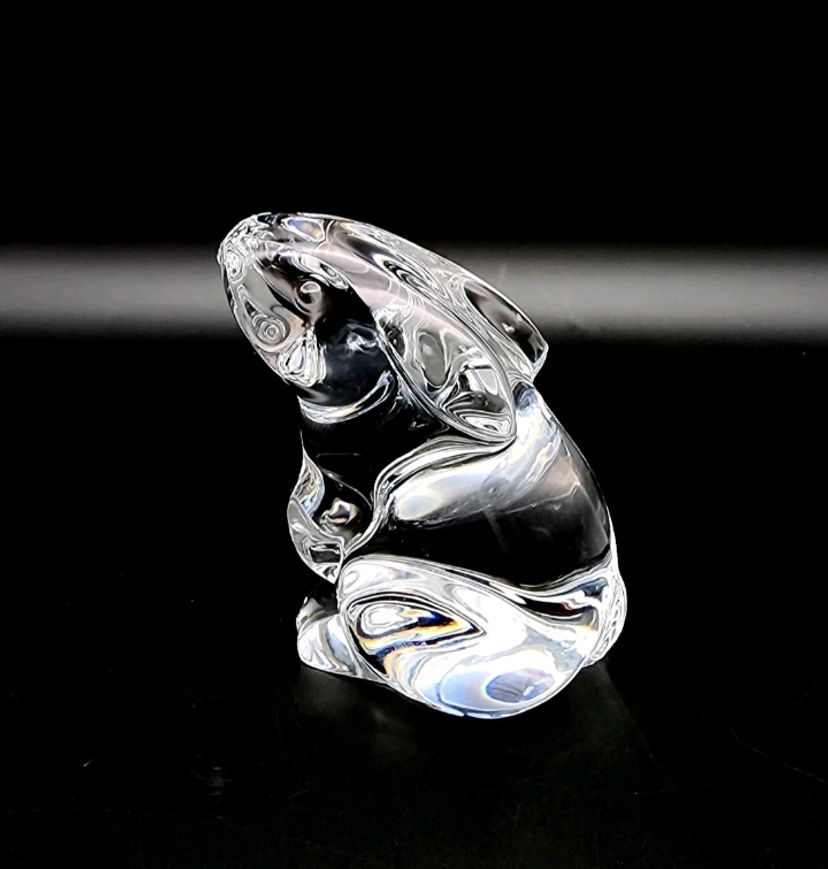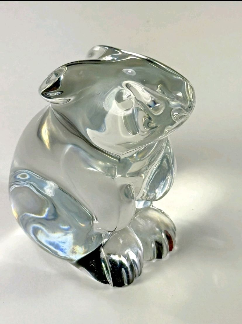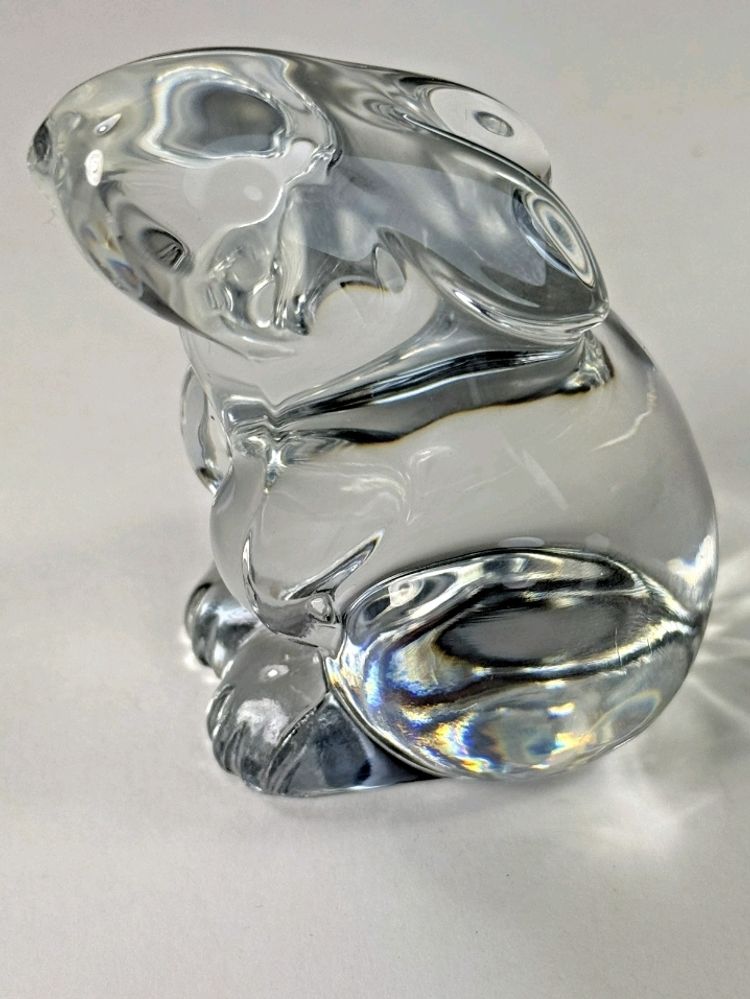 Cute Baccarat Art Glass Clear Bunny Rabbit Figurine/Paperweight This Lovely Piece Is Etched Baccarat France On The Underside And Baccarat Scrolled On The Side Of Its' Base Measures About 3 Inches Tall By 2.5 Inches Deep Perfect Condition, As You Can See In Our Photos What A Beautiful Piece To Add To A Special Collection!