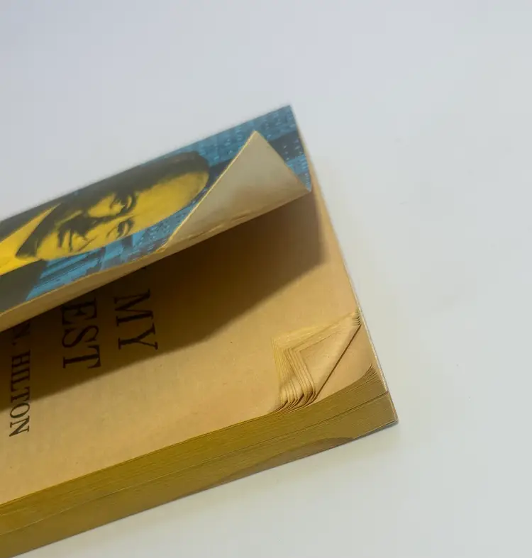 Cover has wear on edges and corners on cover, also creases by spine on both sides, also has common yellowing and discoloration throughout. Top right corner is creased over and up to page 25. Has Common wear and yellowing on pages and edges of cover. There is some appears to be liquid discoloration toward back pages - see last photo. Please look over and enlarge photos for overall condition.