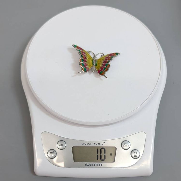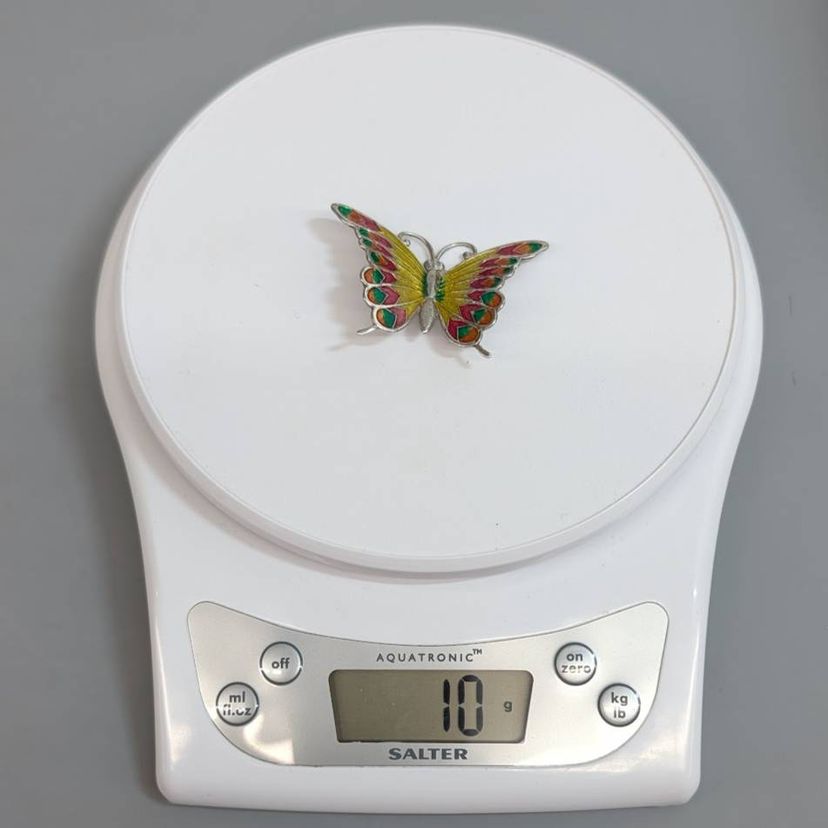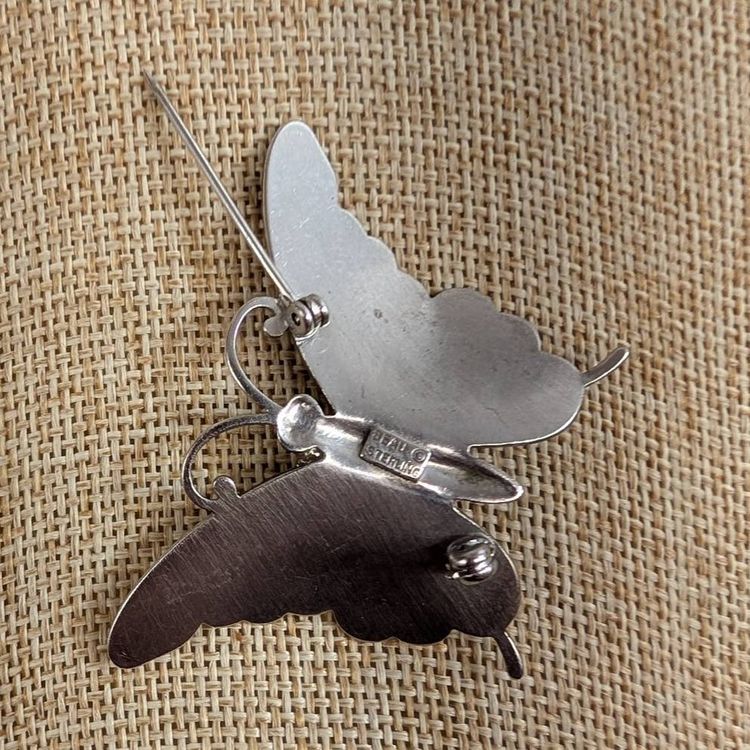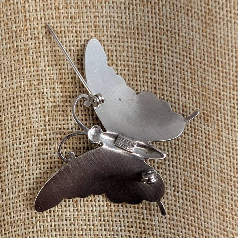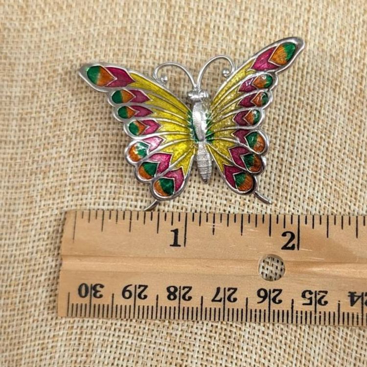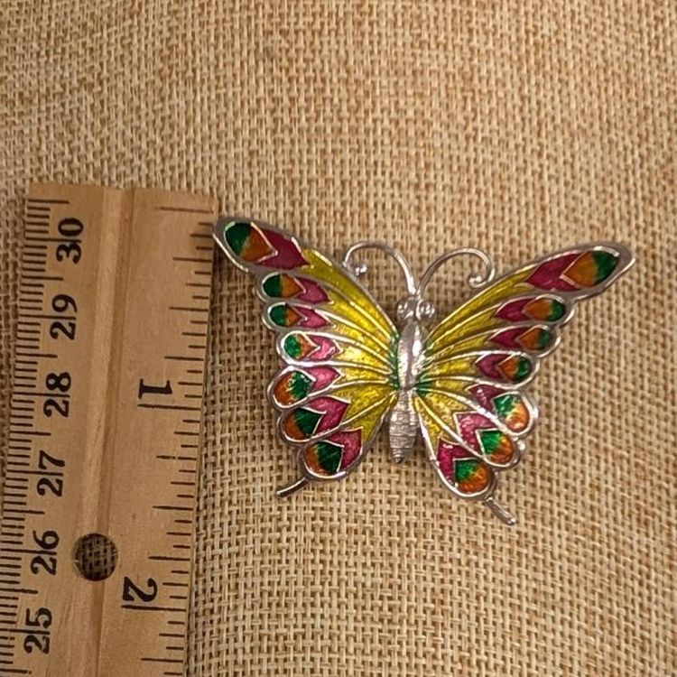Beautiful, butterfly brooch from Beau. Sterling silver with multicolored enamel details. In nice, used condition. Measurements ~ 2 x 1-38"