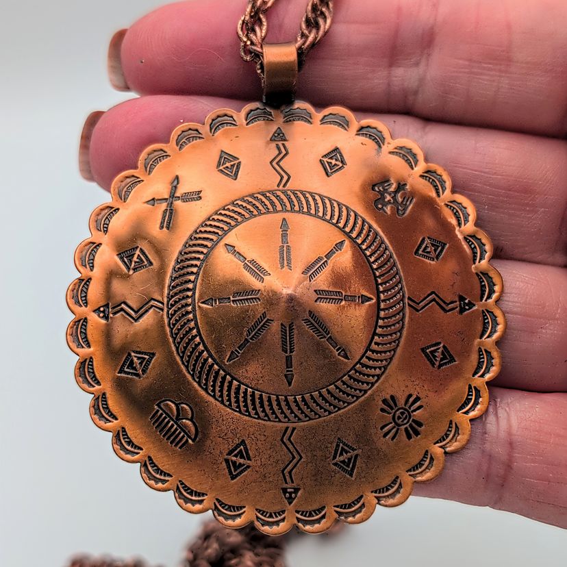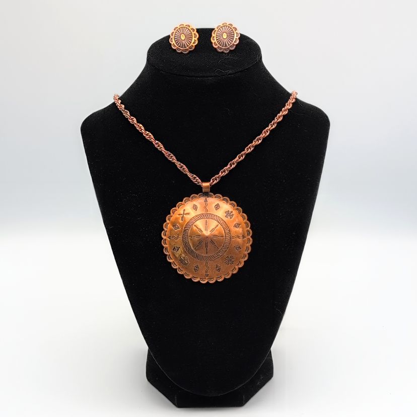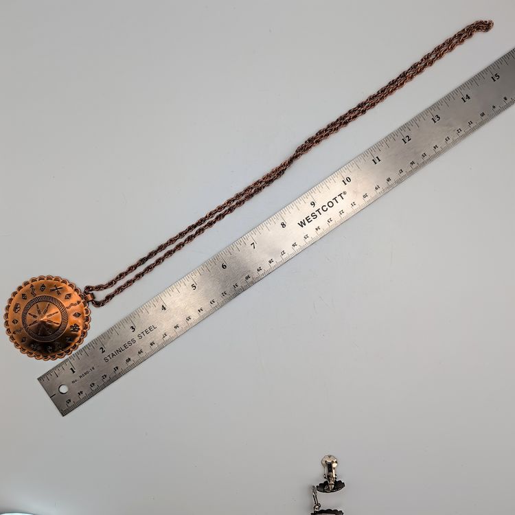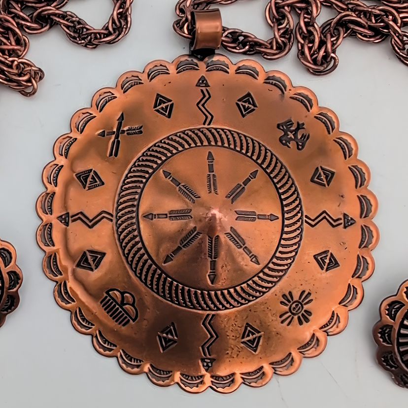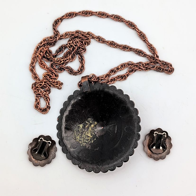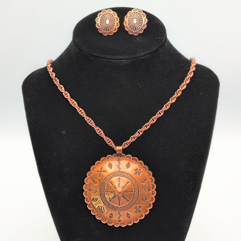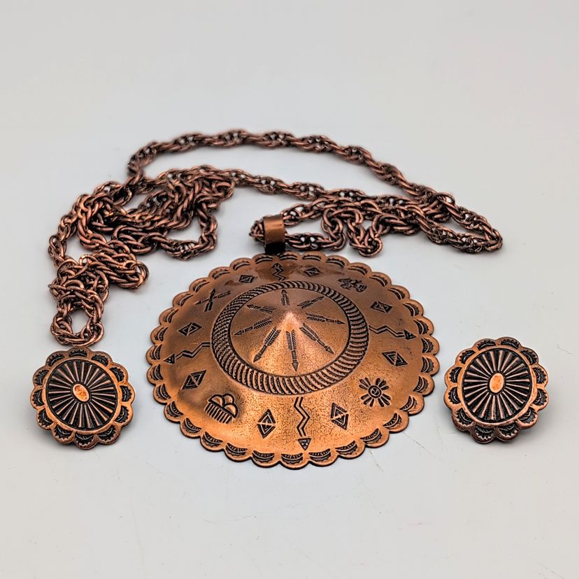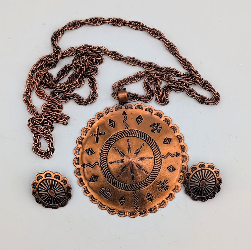 Vintage Bell Trading Post Copper Tribal Southwestern Necklace & Clip on Earrings