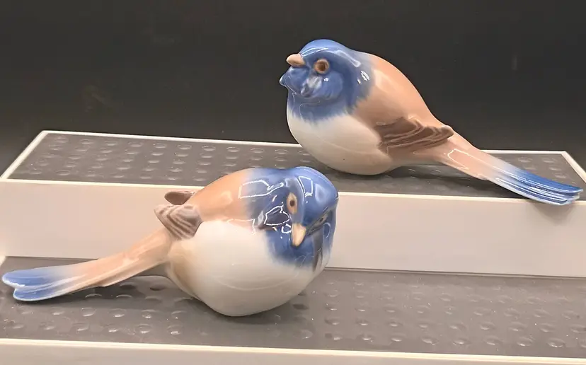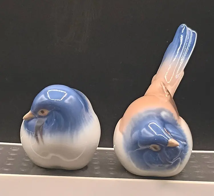 The Vintage Bing & Grondahl B & G Bird Optimist & Pessimist Porcelain figurines are a charming collectible set from the mid-20th century. These multicolored porcelain figurines depict a bird in an optimistic and pessimistic pose, reflecting the era's style and design trends. Made in Denmark, these glossy finish figurines are Perfect for collectors or enthusiasts of 1960s Scandinavian design.