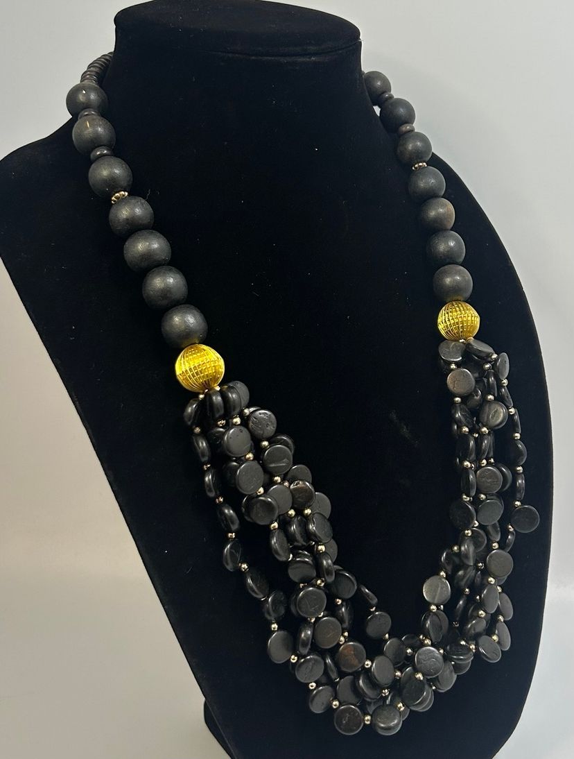 Common vintage wear, some black has faded of some beads. Metal in very good condition with minimal wear. Barrel clasp intact and functional.