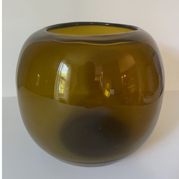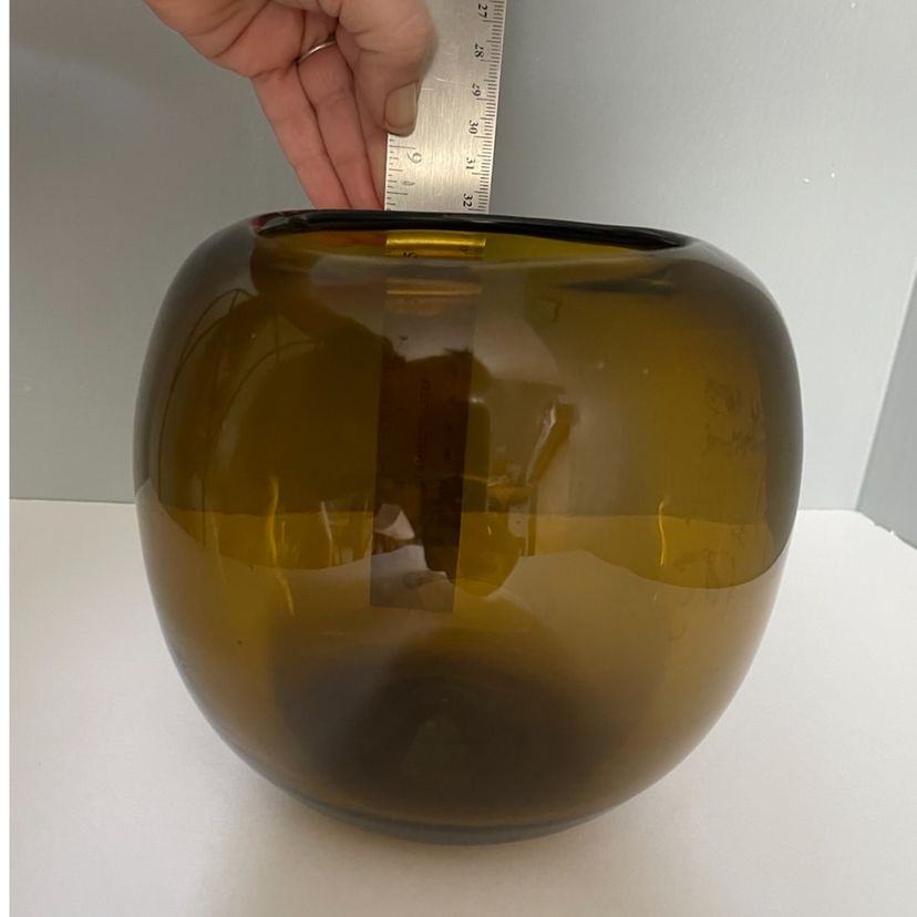 Really nice Blenko globe vase. Dark amber color. Made between 1936-1956. No chips. Appear is to be internal cracks by pontil. See last photo