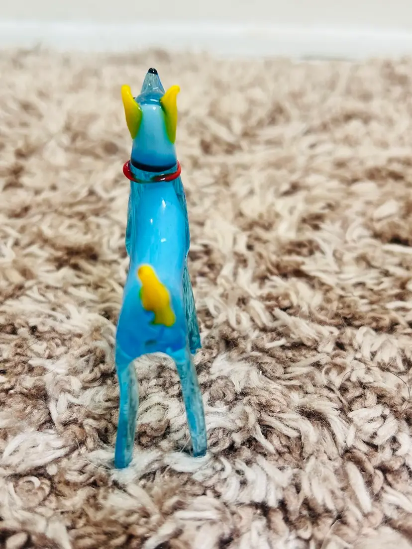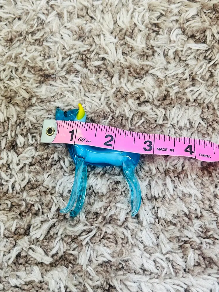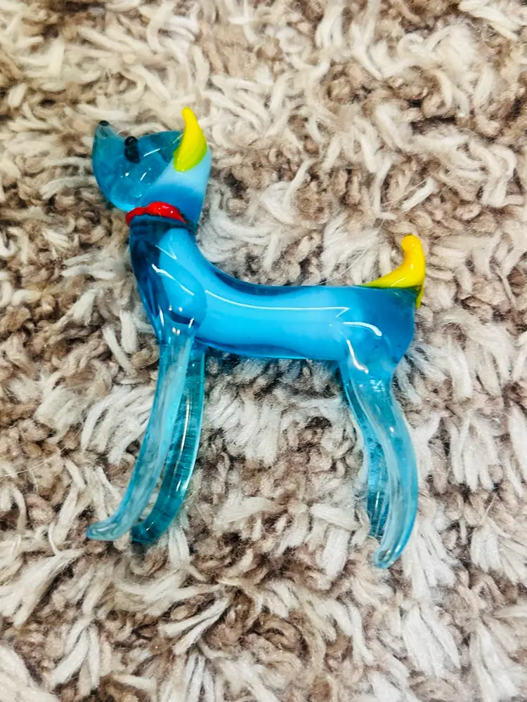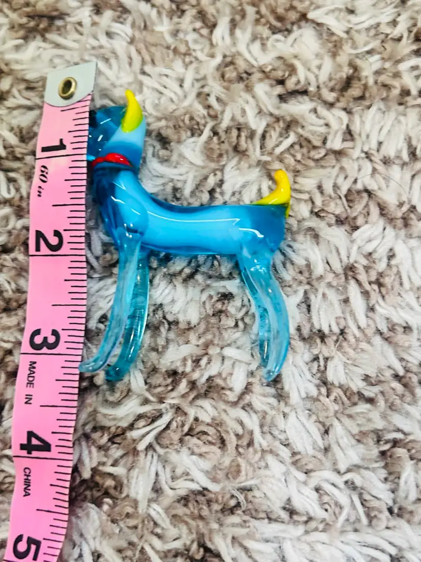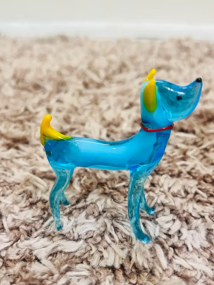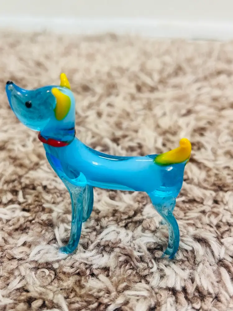 Vintage Blue Glass Dog Figurine Hand Blown 2” Lx 3” T Very Cute!