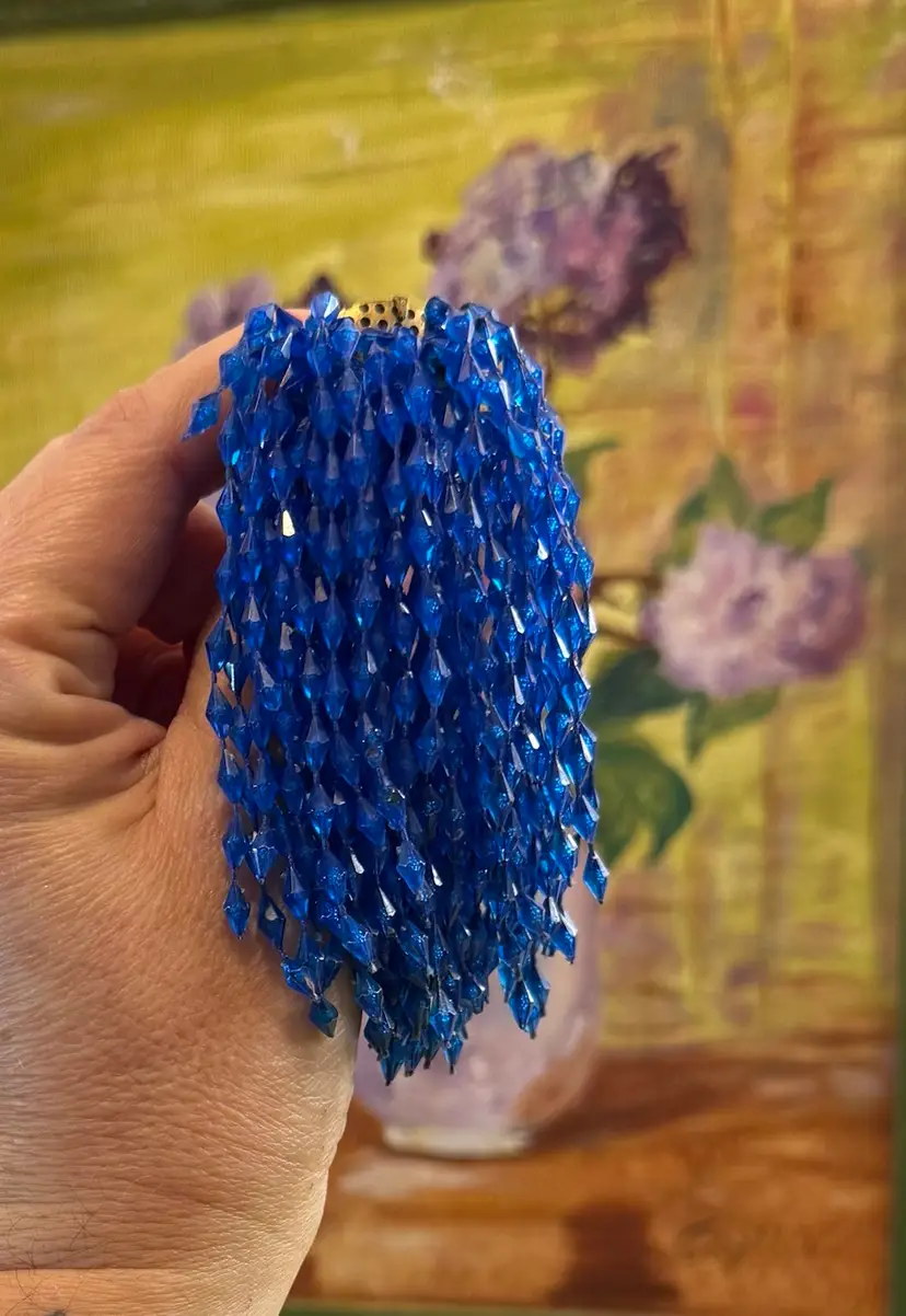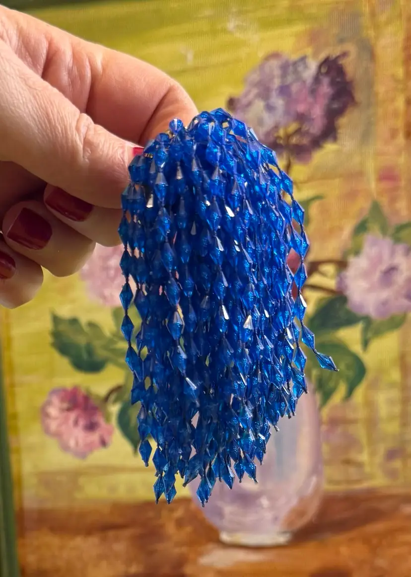 This vintage blue plastic brooch features a retro design of a waterfall cascade. The brooch is made of plastic material and does not feature any main stone, making it a versatile accessory for a variety of outfits. Its vintage appeal adds a touch of nostalgia and charm to any jewelry collection, perfect for those who appreciate retro fashion and unique pieces with a touch of history.