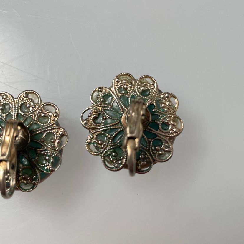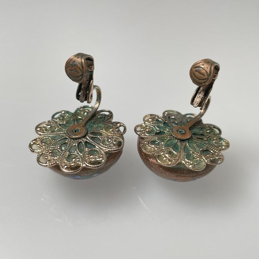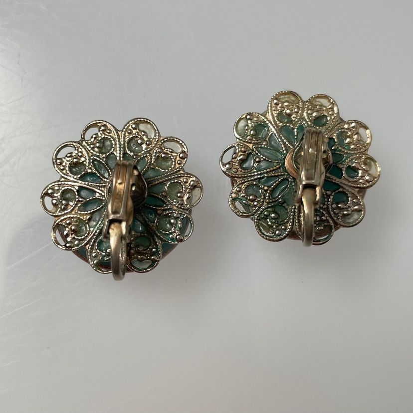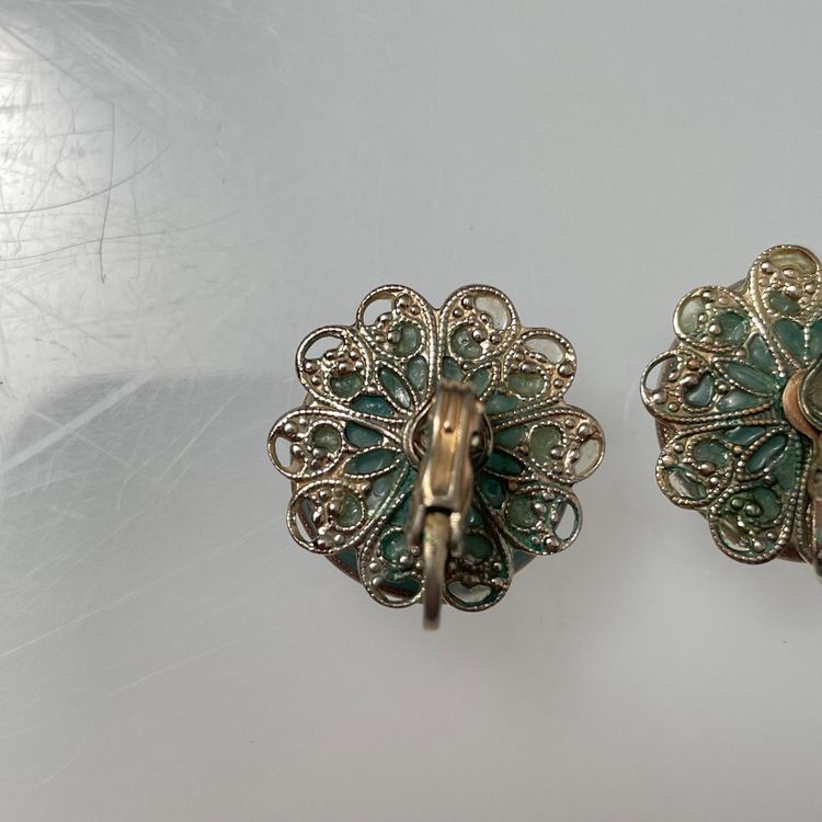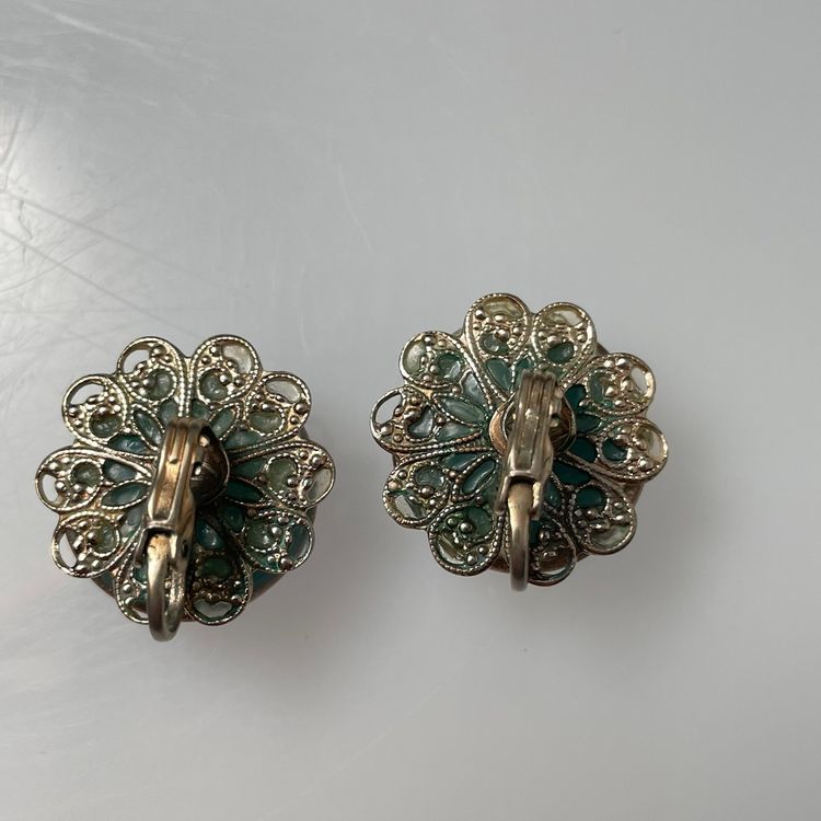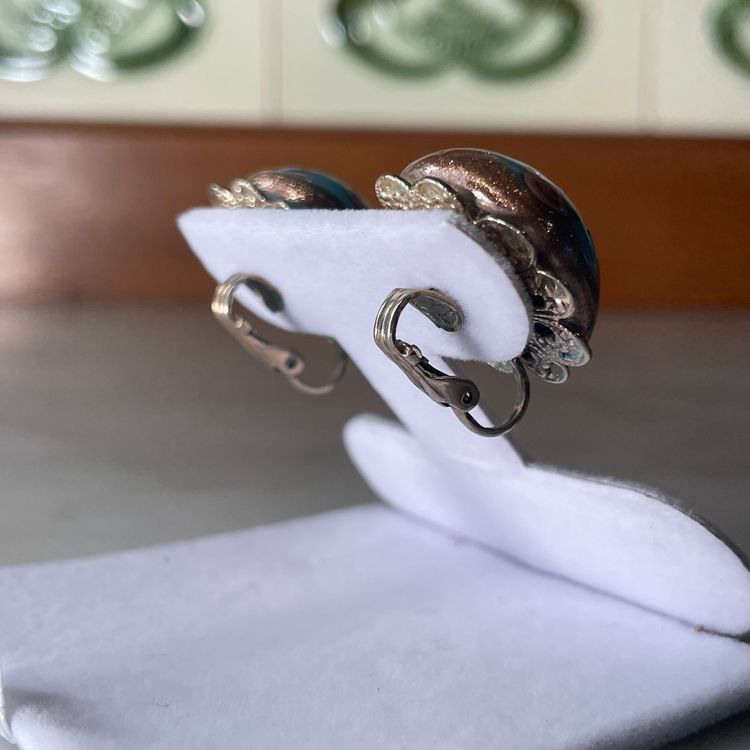 Good Preowned - visible wear and/or minor flaws present. Blue oxidation to the metal I've attempted to get off. The glass cabochons themselves are in great condition.