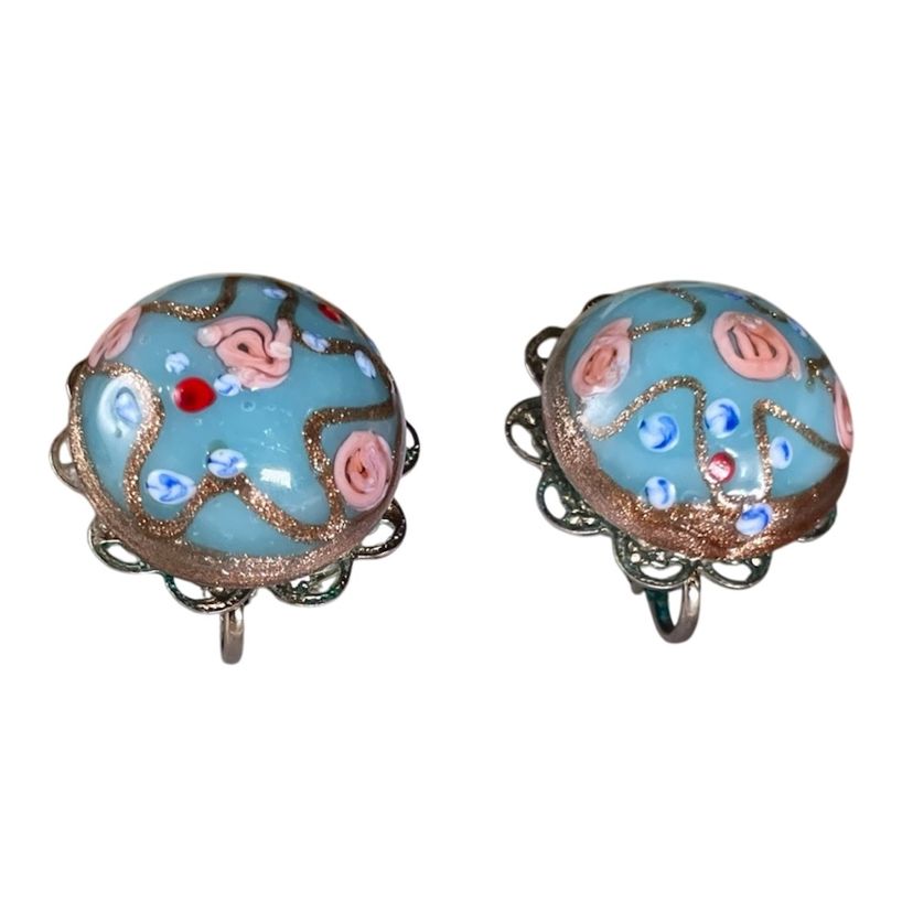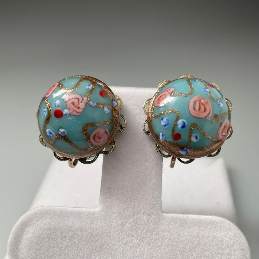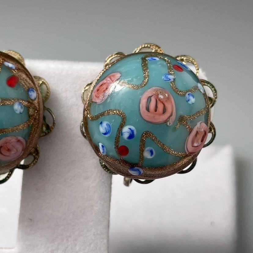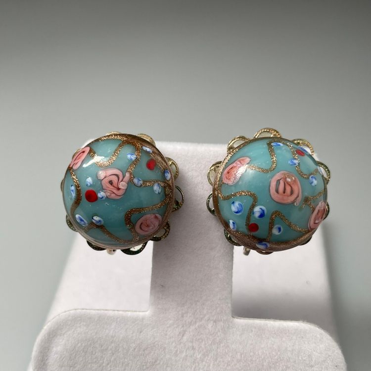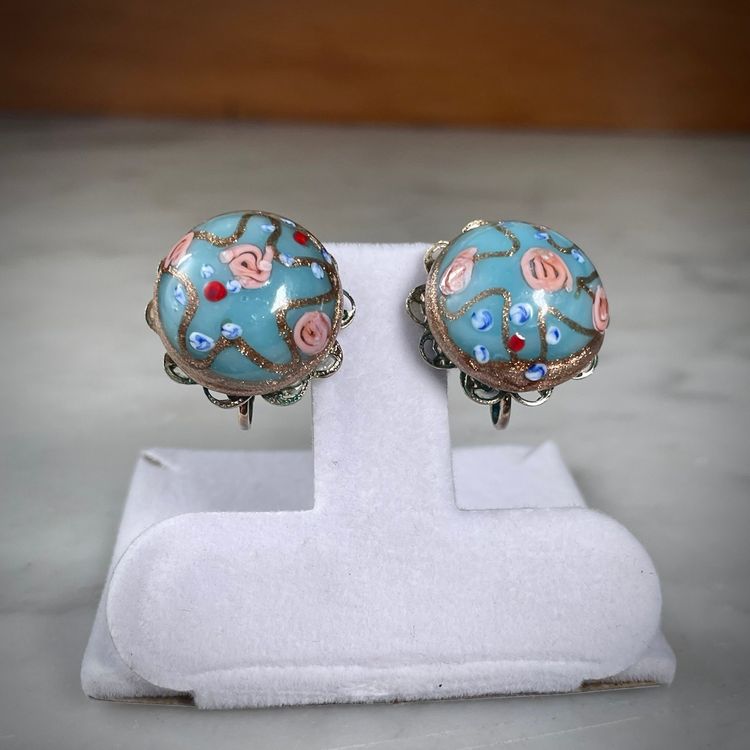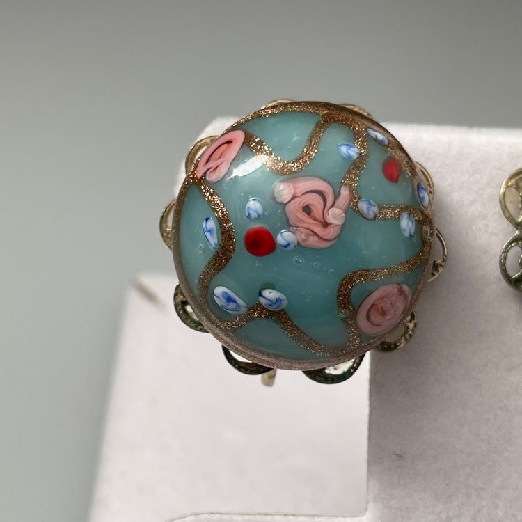 Good Preowned - visible wear and/or minor flaws present. Blue oxidation to the metal I've attempted to get off. The glass cabochons themselves are in great condition.