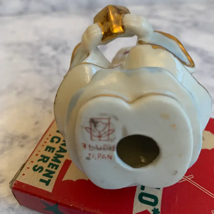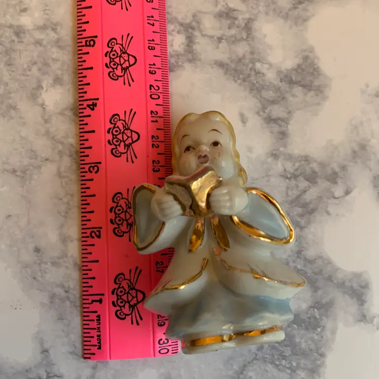 No chips or cracks, small tiny blemish on one cheek. No paint loss, gold trim is beautiful. Box not included.