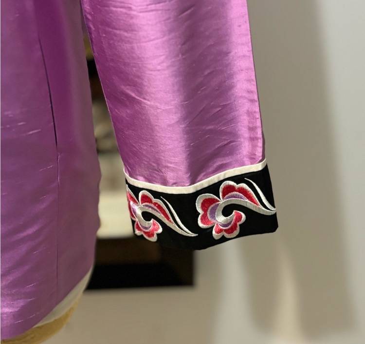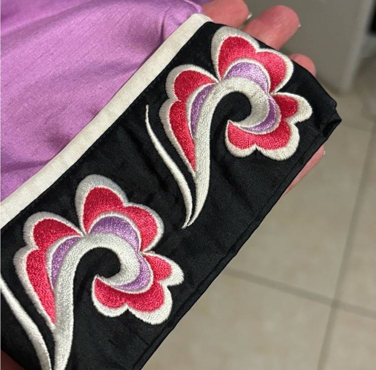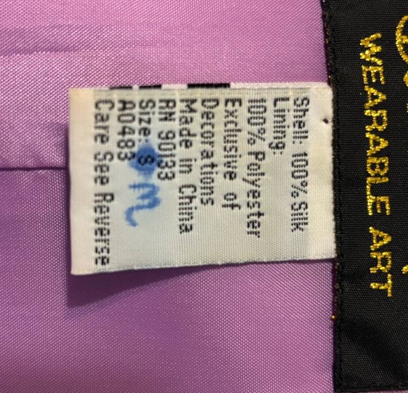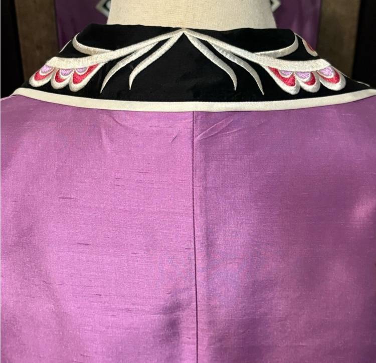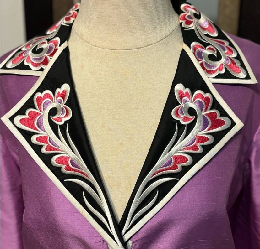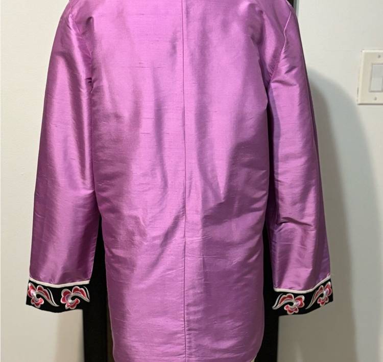Bob Mackie Womens label Sz Small Very oversized. Will fit up to Large Purple Lavender Wearable Art Lightweight Jacket blazer Design Floral Collar embroidery Padded Shoulders 100% Silk Dupioni pit to pit- 23" sleeve length- 24" length down back- 29.5"