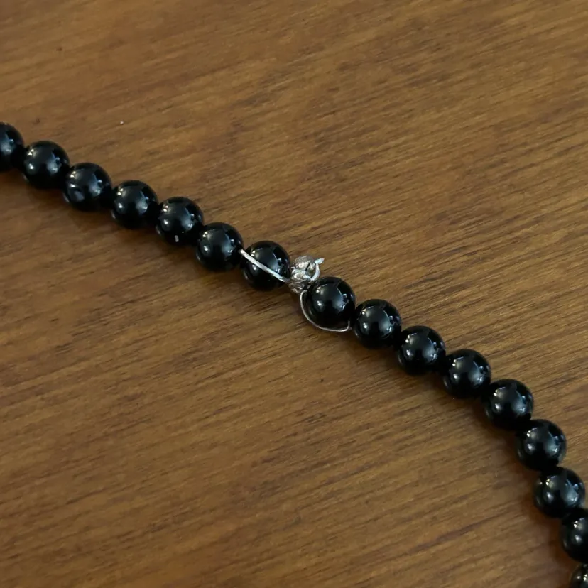 Vintage Boho Chunky Black Wood Beaded Necklace 25" long
