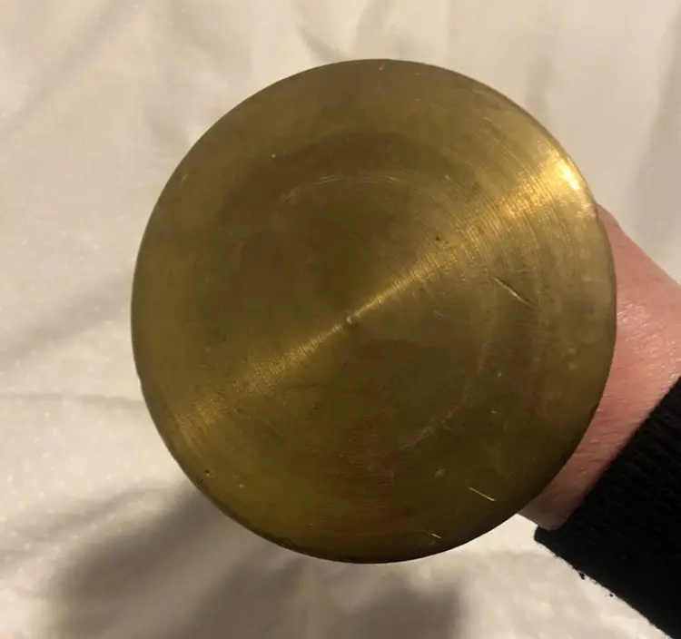 This vintage brass butcher’s meat tenderizer, crafted from solid brass. This heavy-duty mallet was originally designed for professional butcher use, making it both durable and collectible. Its golden patina and industrial design make it a standout decorative piece for rustic or vintage kitchens. In good used condition. Heavy and solid.
